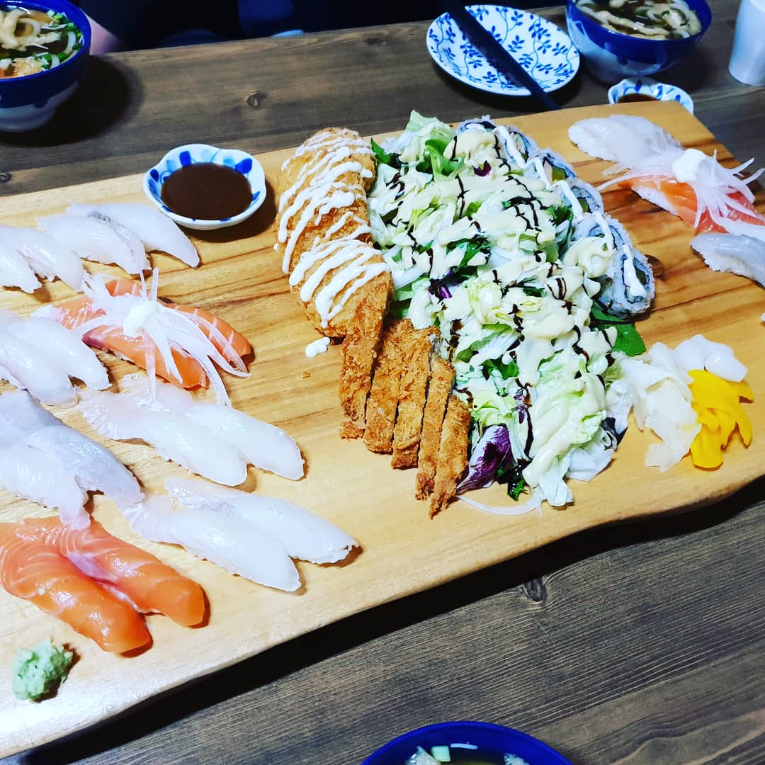 1인당 초밥 8p + 돈카츠 + 샐러드 + 우동 이 제공 됩니다.