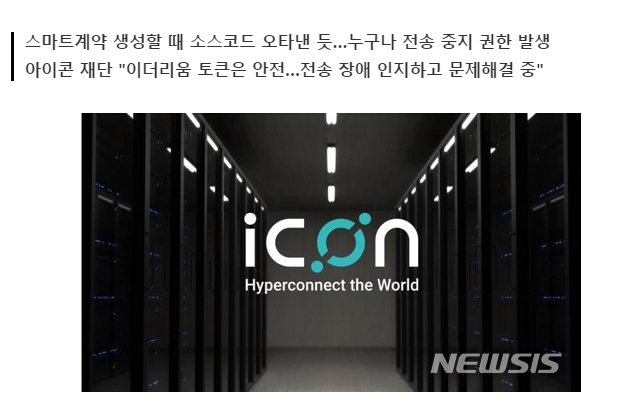 단순한 실수지만 이로 인해 관리자를 제외한 누구나 전체 아이콘 토큰의 전송을 중단시킬 수 있다는 명령이 스마트계약에 기록됐던 이슈입니다.