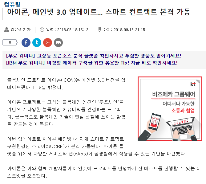 아이콘 성공적으로 ICO를 마쳤고,