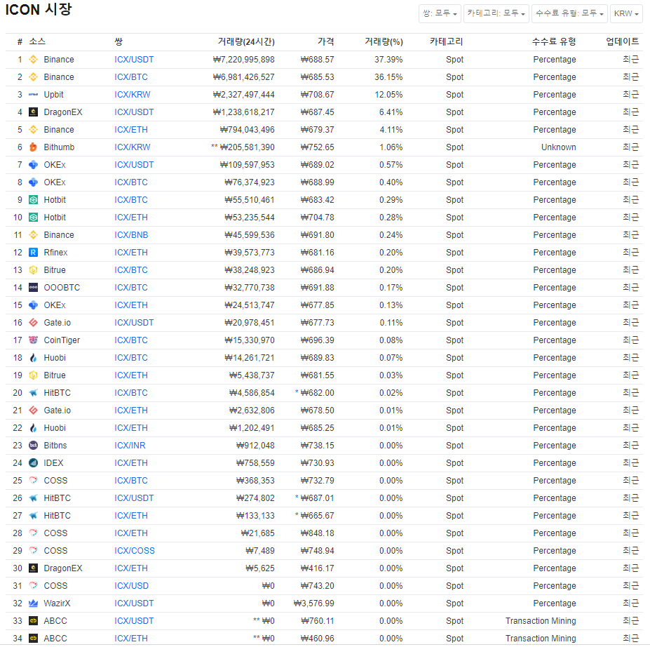 아이콘은 현재 바이낸스, 업비트, 빗썸, OKEx 등의 거래소에서
