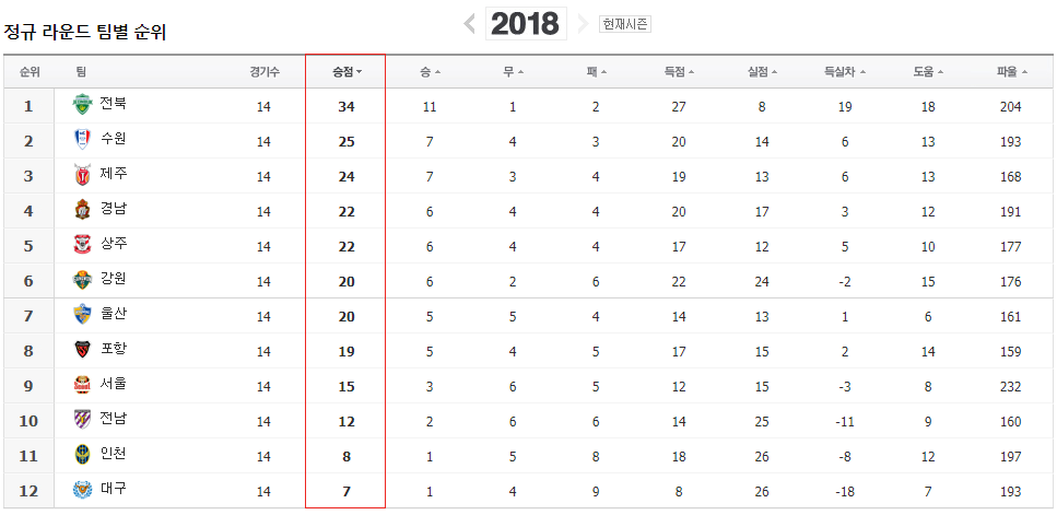 오늘 (2018-07-07)부터 K리그1(1부) 그리고 K리그2까지 모든 팀을 소개해볼까 합니다.