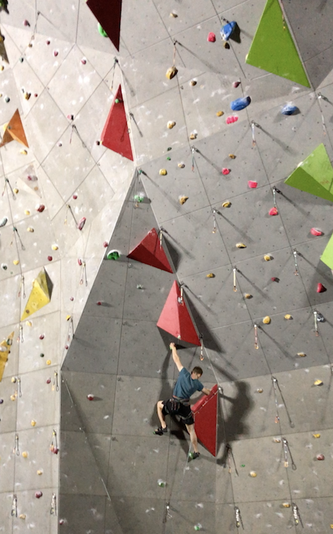 줄을 매달고 15미터의 수직 벽을 오릅니다. 정해진 홀드들의 배치가 있습니다. 빨리 올라가는 선수가 이깁니다.