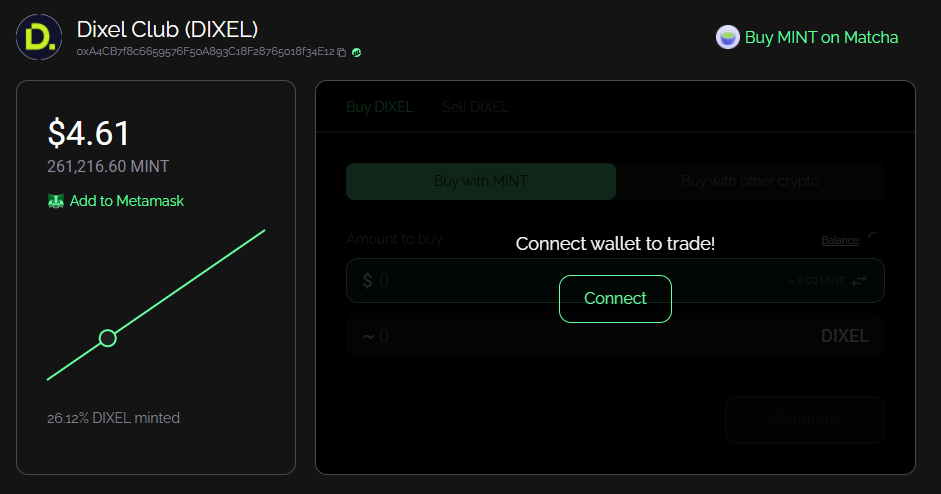 딕셀 토큰 자체의 경우는 민트클럽 기반으로 생성이 되기 때문에 선형적 본딩커브에 의해 가격이 결정됩니다. NFT 생성이 많이 되고 소각이 적게 될 경우 그만큼 딕셀 토큰은 잠기게 되면서 시장 최소 가격이 형성이 되는 형태입니다. 추가적으로 딕셀의 경우는 민트토큰과 연동이 되는 관계로 민트토큰의 가격이 오를시 딕셀의 가격 역시 같이 오르게 되는 형태입니다.