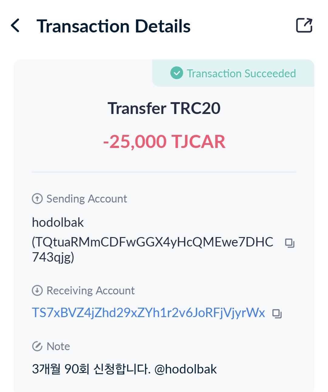 TJCAR 참여 전송 주소 > TS7xBVZ4jZhd29xZYh1r2v6JoRFjVjyrWx