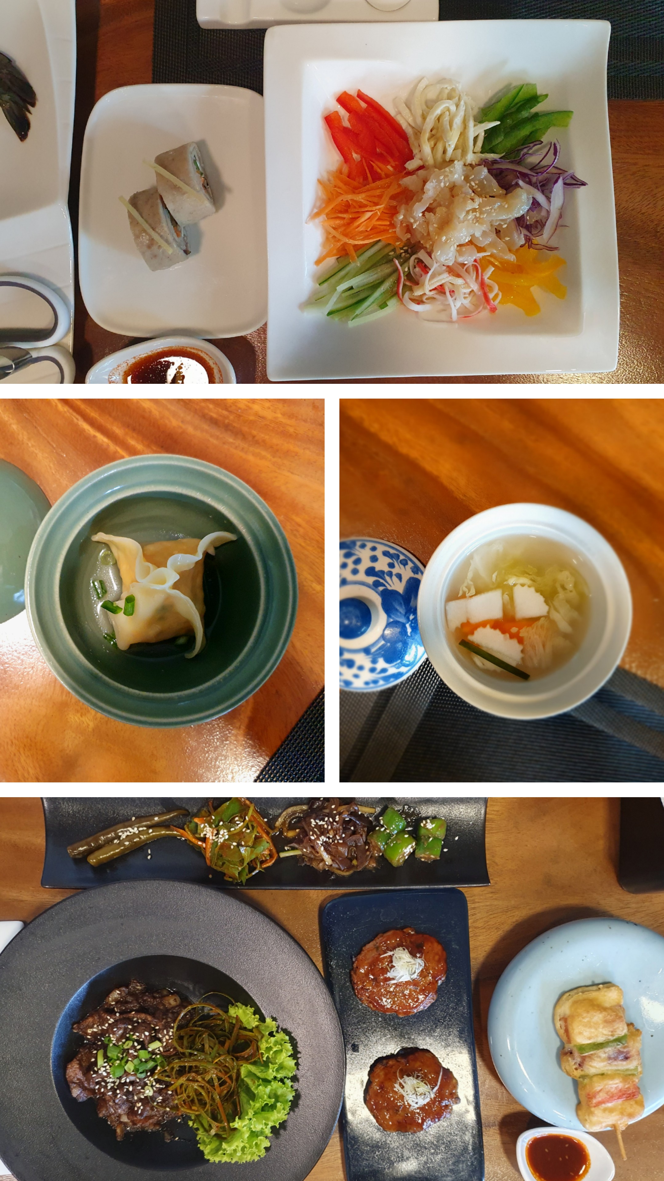 죽, 물김치, 만두, 잡채, 해파리냉채, 불고기, 새우장, 떡갈비, 비지찌개 등 기대하지 않았던 메뉴들이 다양하게 나오는 것에 우선 놀랐고, 계산을 하며 한국에선 생각도 못 할 가격에 또 놀랐다.