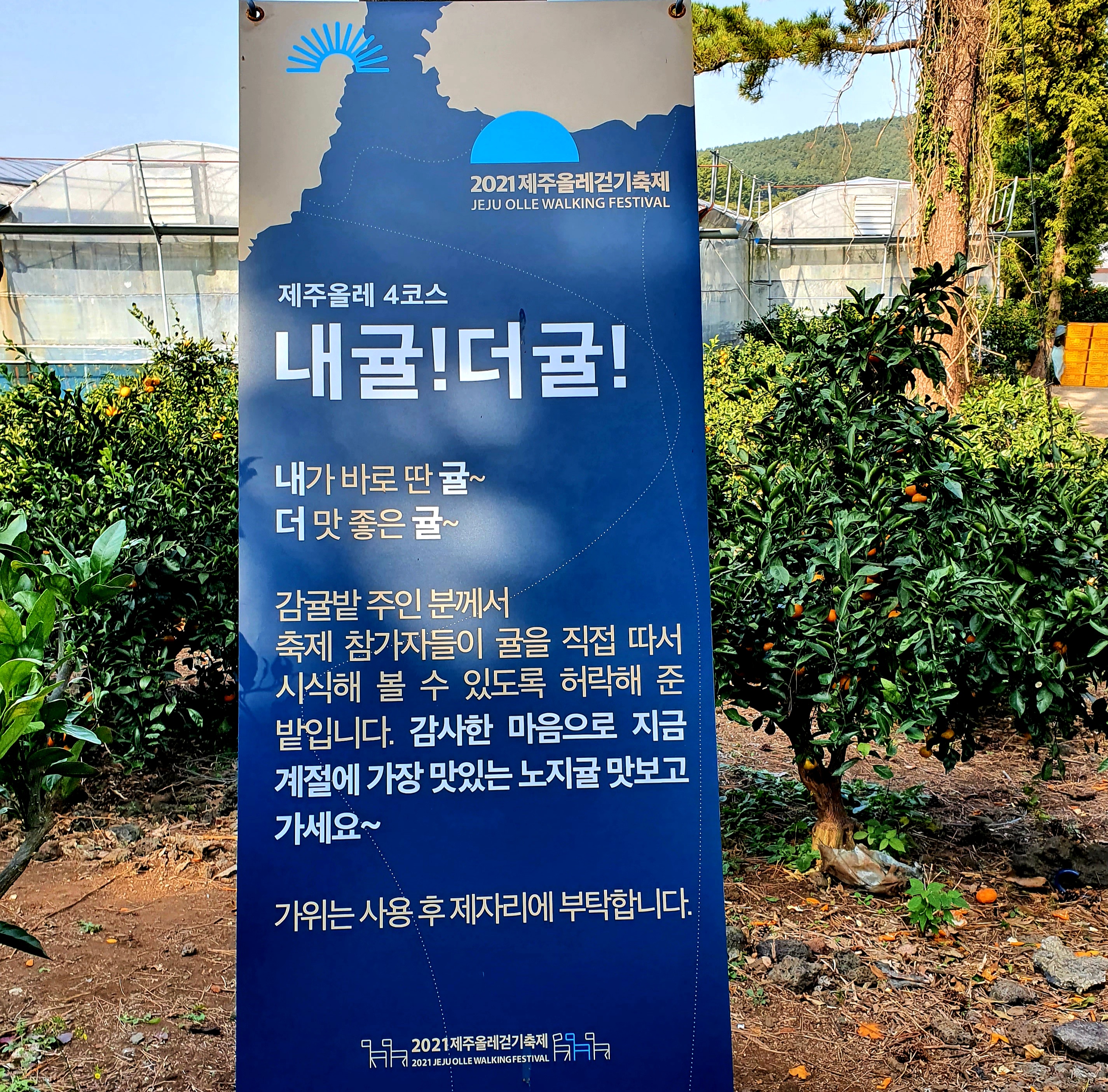 한참을 걷다 제주 감성을 넘어 제주 인심도 만났다. 먹으면 얼마나 먹는다고 할수도 있겠으나 선뜻 밭의 일부를 내주는게 쉬운 일 이겠나? 어디서 들은건 있어서 꼭지에 바짝 대고 가위질을 해본다. 딱 먹을 만큼 2개는 아쉬우니 3개만 따고 달달한 마음으로 발걸음도 가볍게 걷는다.