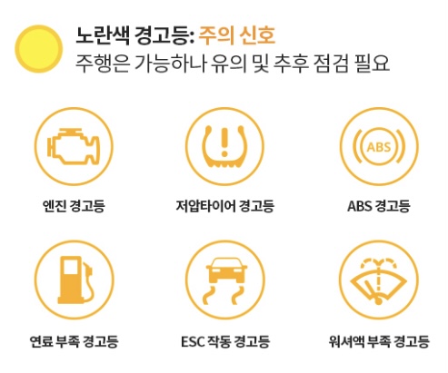 <주의가 필요한 자동차 노란색 경고등>