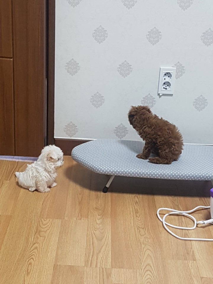 소담이(말티즈), 달보이(푸들) 둘다 12월 생이고 저희집에 딱 반나절 차이로 들어왔어요!!