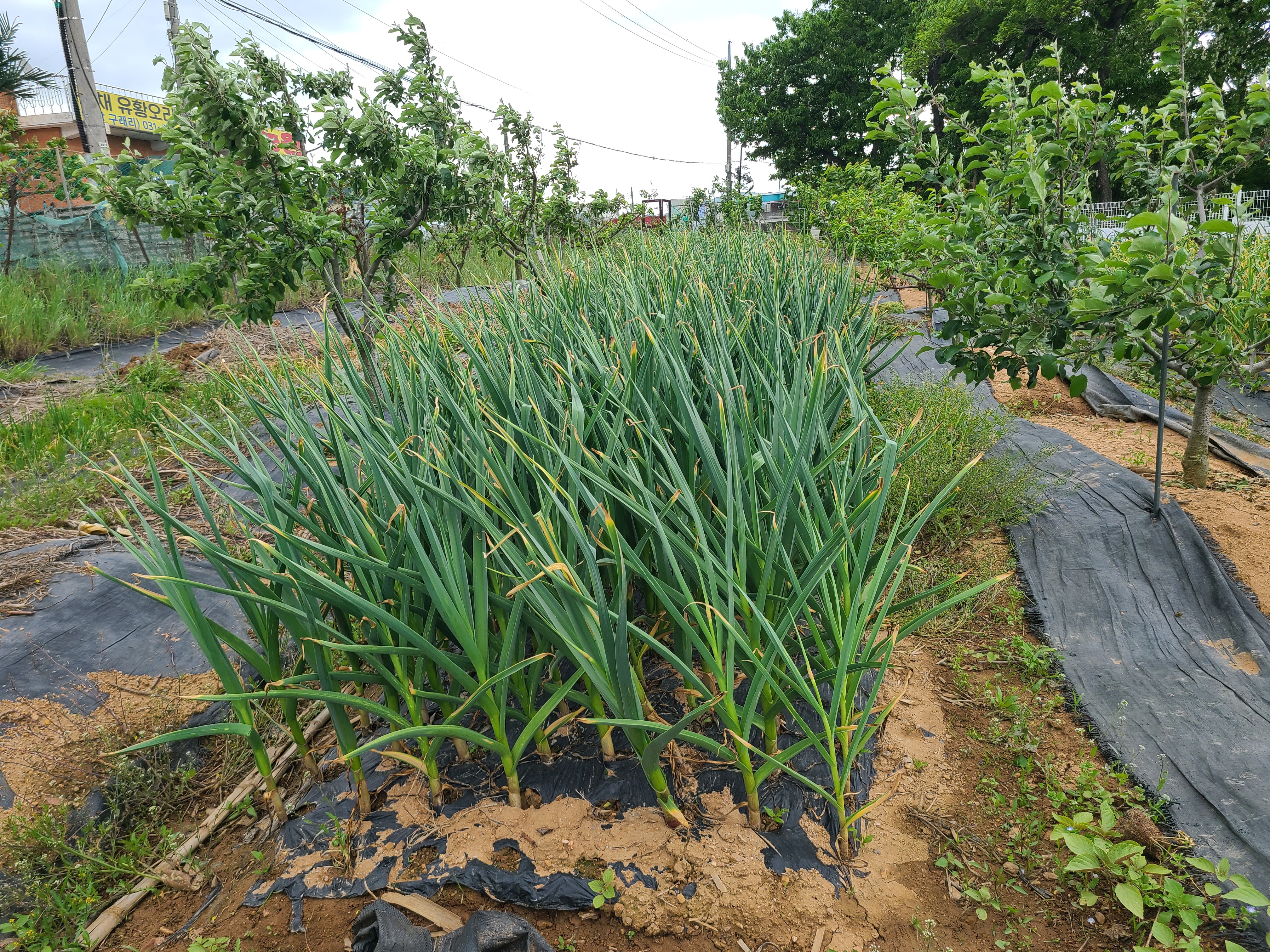 [랑인농부]마늘jhy2246 (73)in #kr • 2 years ago 마늘이 잘 자라서 넘실넘실 춤을 추네요 랑이가 고집하는 한지형 육쪽 마늘입니다 한번만 키워보자고 우겨서 심은 홍산마늘입니다 육쪽마늘보다 크다했더니 마늘쫑이 나오고 있네요 마늘쫑 볶음을 좋아해서 조금만 뽑았어요 홍산마늘은 주아를 키워야 하기에 육쪽마늘 마늘쫑 나오기를 기다려야 해요 ~ 일단 맛나게 먹고 ~ #dailylife #zzan #dblog #aaa #krsuccess #fm-pool