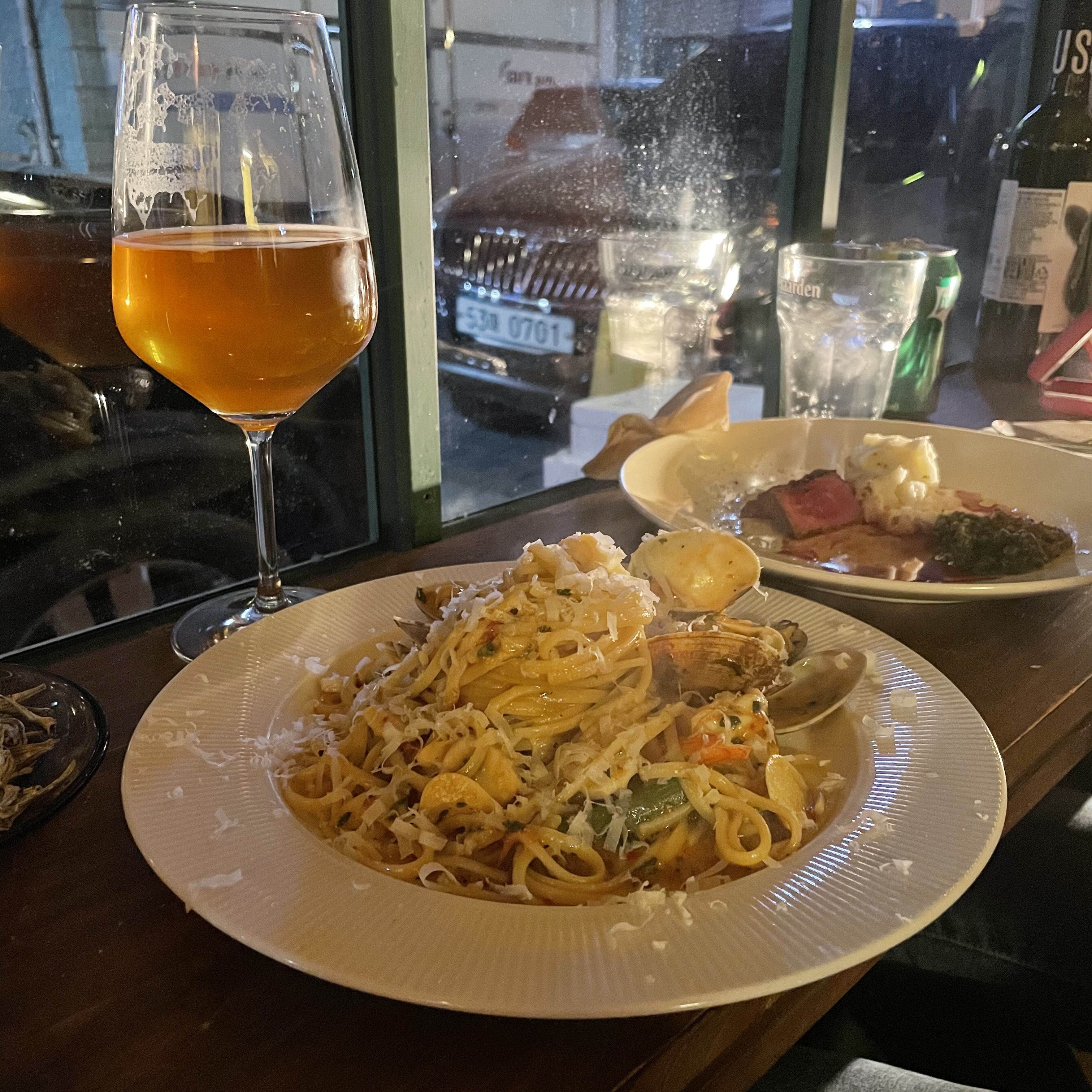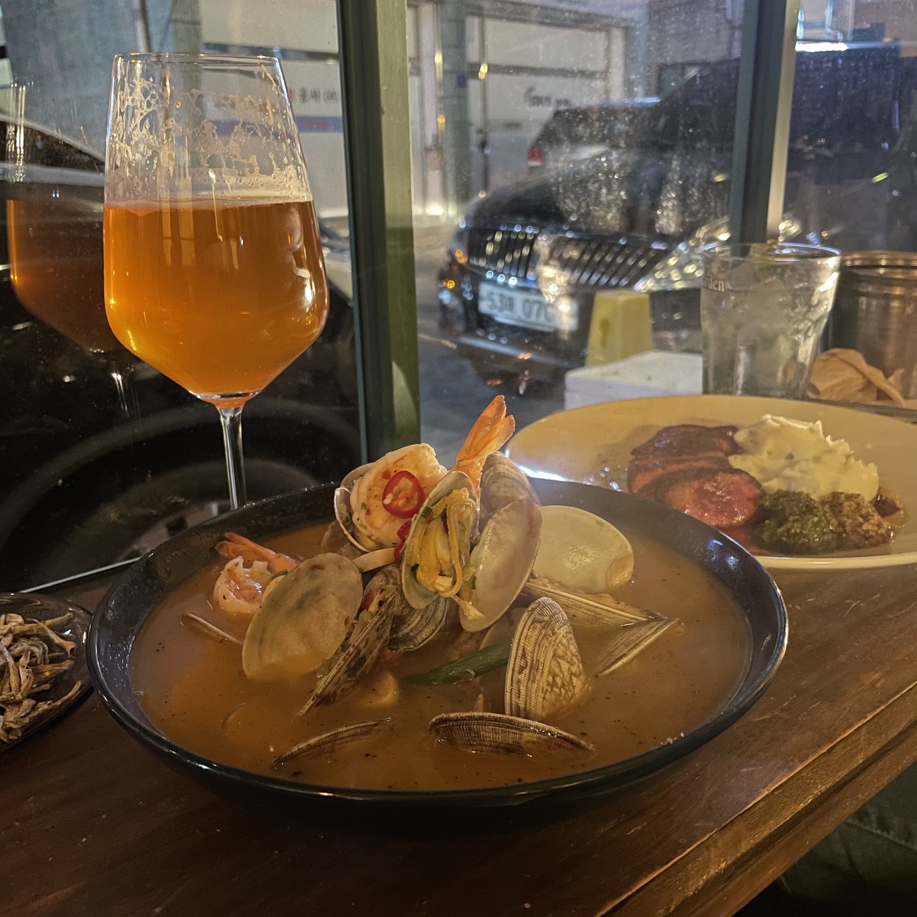 [맛집] 인덕원역 갬성술집 코주박 후기jisucjswo (32)in #kr • 5 years ago 첫 블로그를 어떤걸로 쓸까 고민하다가 최근에 갔었던 안주가 정말 맛있는 갬성술집 코주박 후기입니닷 인덕원역 골목쪽에 위치하였던 코주박 맥주와 사이다 주문했구용 사르르 녹는 살치살 스테이크 국물이 정말 최고였던 바지락새우찜파스타 먹다가 말씀드리면 파스타로 재요리해주셔용 정말 맛있었고 친절해서 기분 좋아지는 술집,, 존맛탱,,💘 재방문의사 ⭐️⭐️⭐️⭐️⭐️ #food #steak #pasta #jmt