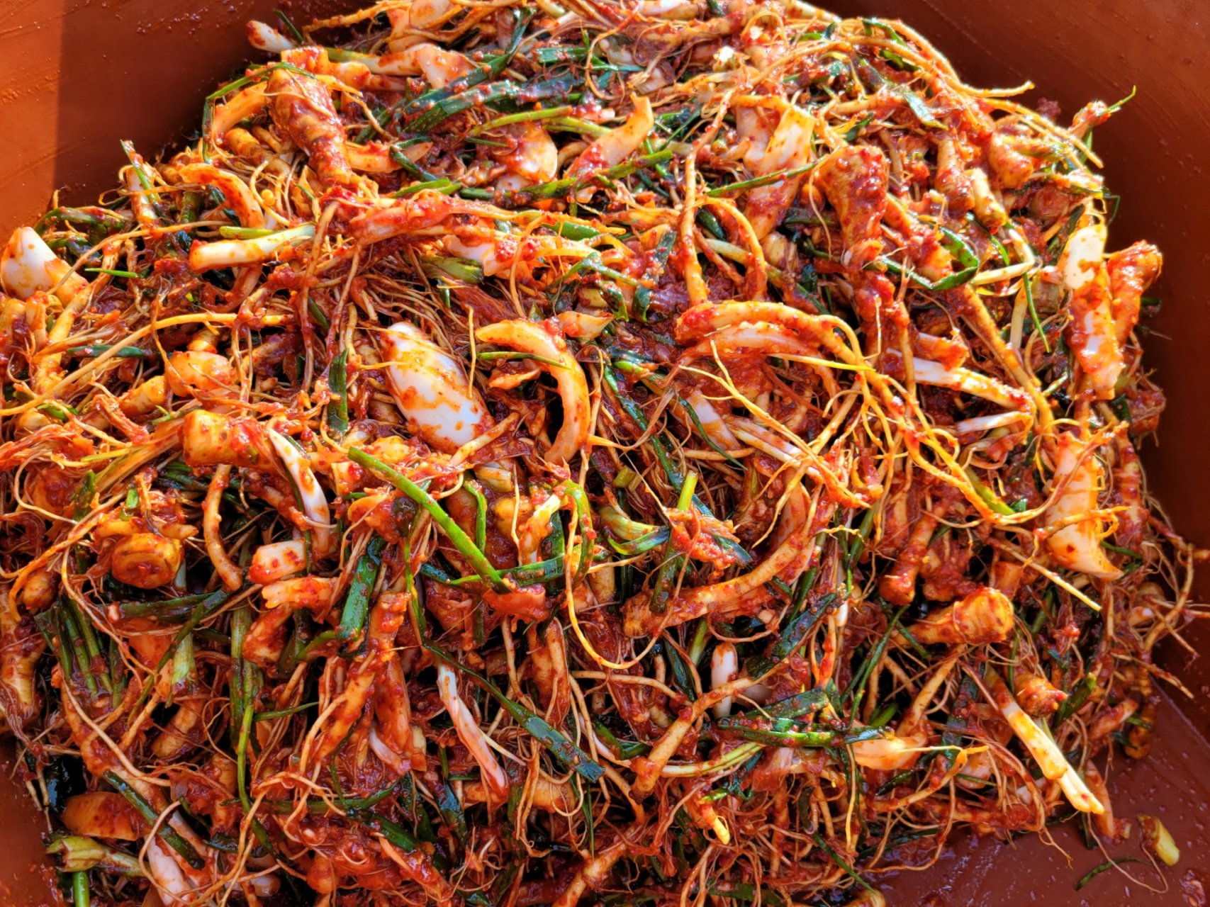 산고들빼기 김치를 만들었어요.jsj1215 (86)in #kr • 4 years ago 이파리가 떨어진 뿌리를 먹는 산고들빼기 김치를 담갔습니다. 쌉쌀한 고들빼기를 좋아해서 시골에서 주문해 만들었습다. 고들빼기는 떫고 쓴맛을 갖고 있어 나물이나 김치를 만들어 먹는데 쓴맛인 이눌린은 '천연 인슐린'이라 불리고 혈당 조절과 콜레스테롤 저하에 도움을 준다고 하네요. 쪽파도 듬뿍넣고 소금은 그다지 쓰지않고 젖갈로 간을 하였네요. 물엿을 넣어 단맛을 가미하여 쓴맛과 조화롭게 어울리네요. 산고들빼기 김치만으로 밥한그릇 뚝딱입니다.