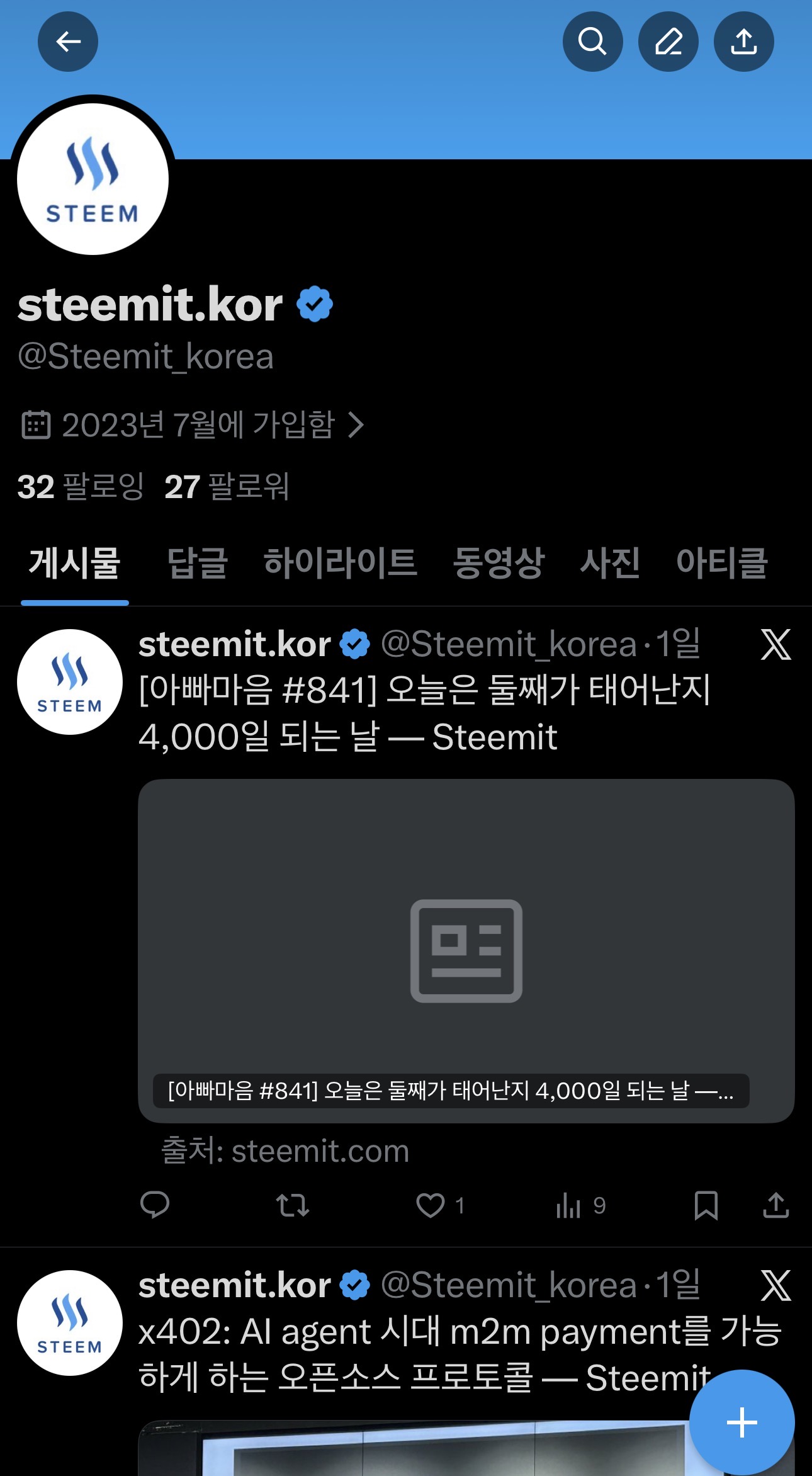 https://x.com/steemit_korea?s=21&t=J4QYPlHYF7JxWQiJyGeRzQ