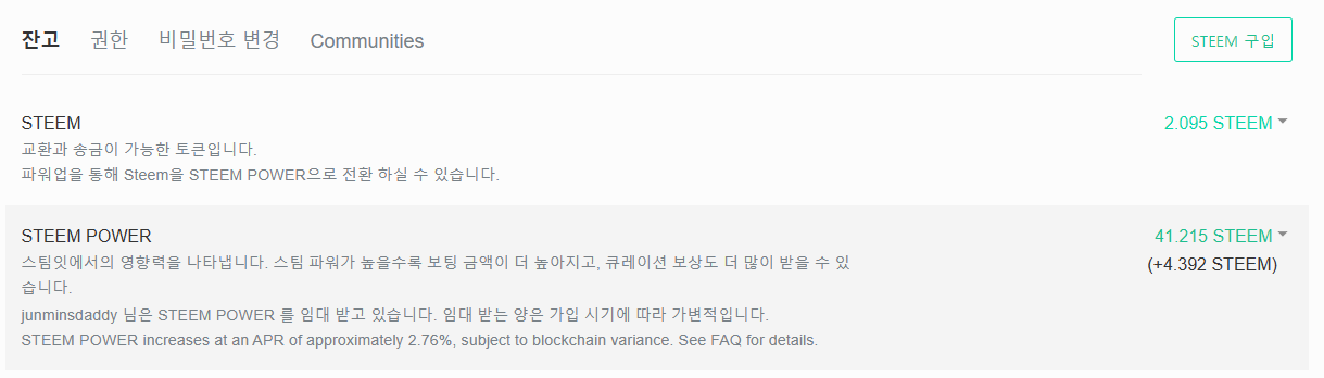 지난주 금요일에 업비트 계정 만들고, 처음으로 스팀코인을 구매했지만 업비트의 디지털 자산출금 제한에 막혀서 스팀파워를 올리는 것은 16일까지 미룰 수 밖에 없었다.