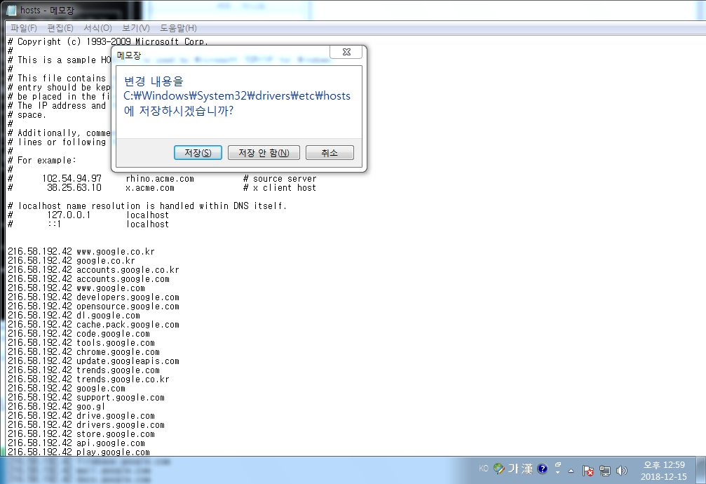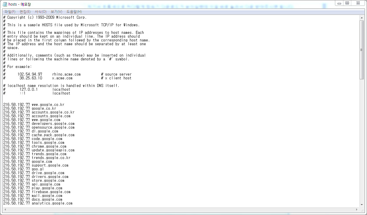 그러면 위의 사진과 같이 무슨 IP들이 주르륵 쓰여져 있는 메모창 하나가 뜨게 됩니다.