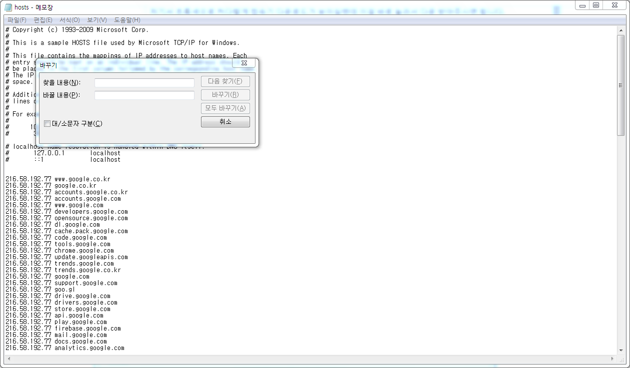 위의 사진과 같이 내용을 모두 입력했으면 모두 바꾸기를 눌려주세요.