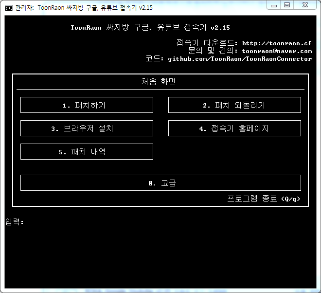 엔터키를 누르시는 순간 패치가 진행되고 위와 같은 창으로 오게 되실 겁니다.
