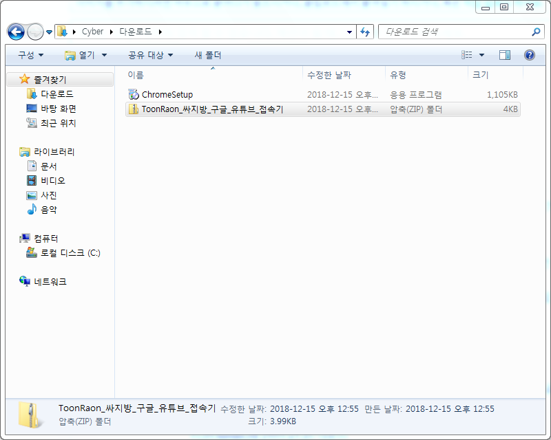 그러면 이제 크롬에서 다운받은 파일들을 볼 수 있는 창이 나옵니다.