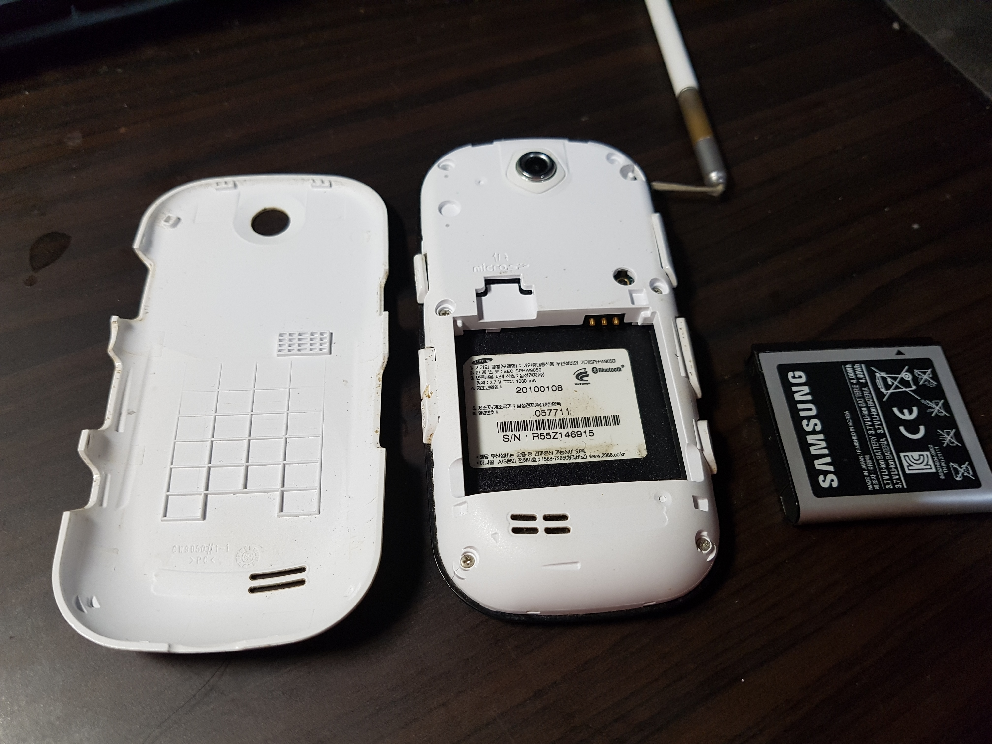 뒷커버를 개봉해보았습니다. 배터리가 엄청나게 작습니다(용량뿐만 아니라 크기도)...그래도 하루정도는 배터리 교체없이 가볍게 버틸 정도로 충분했던 걸로 기억합니다.