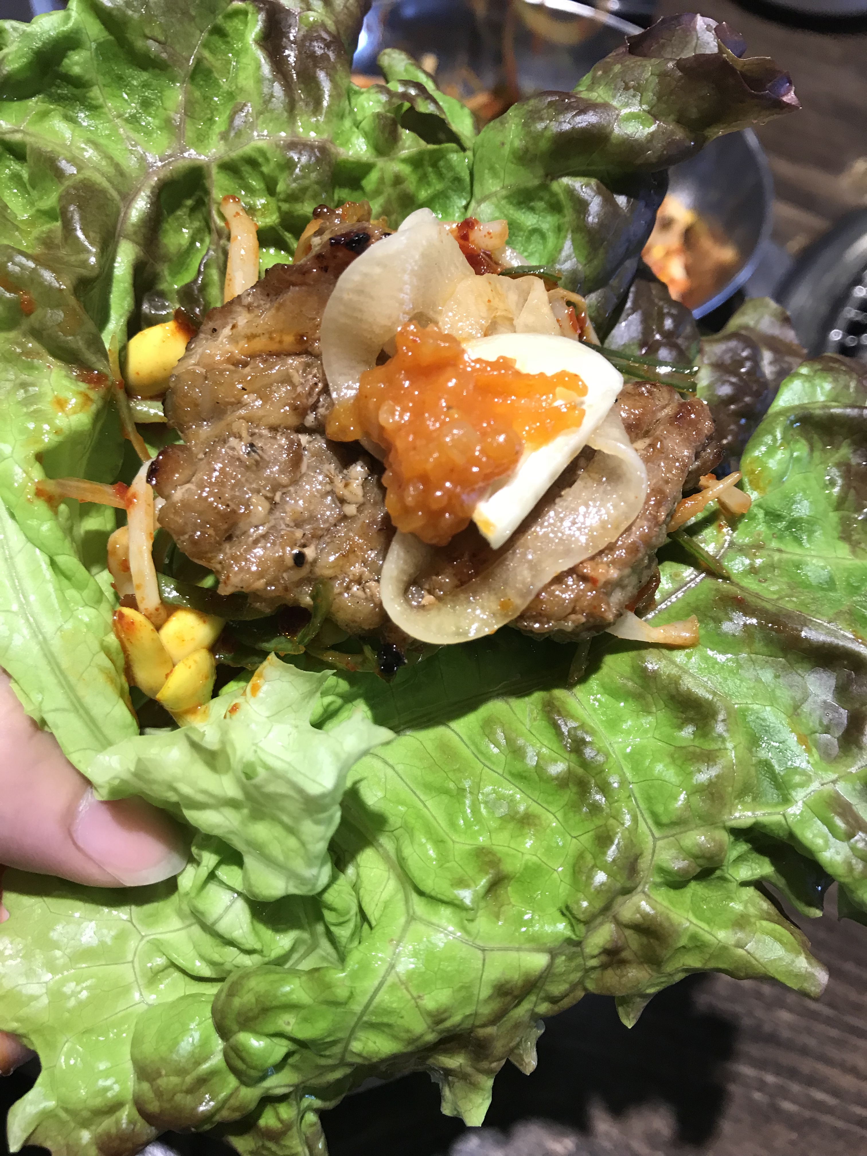 양파절임 올리고~ 고기올리고~ 마늘&쌈장 올리고~