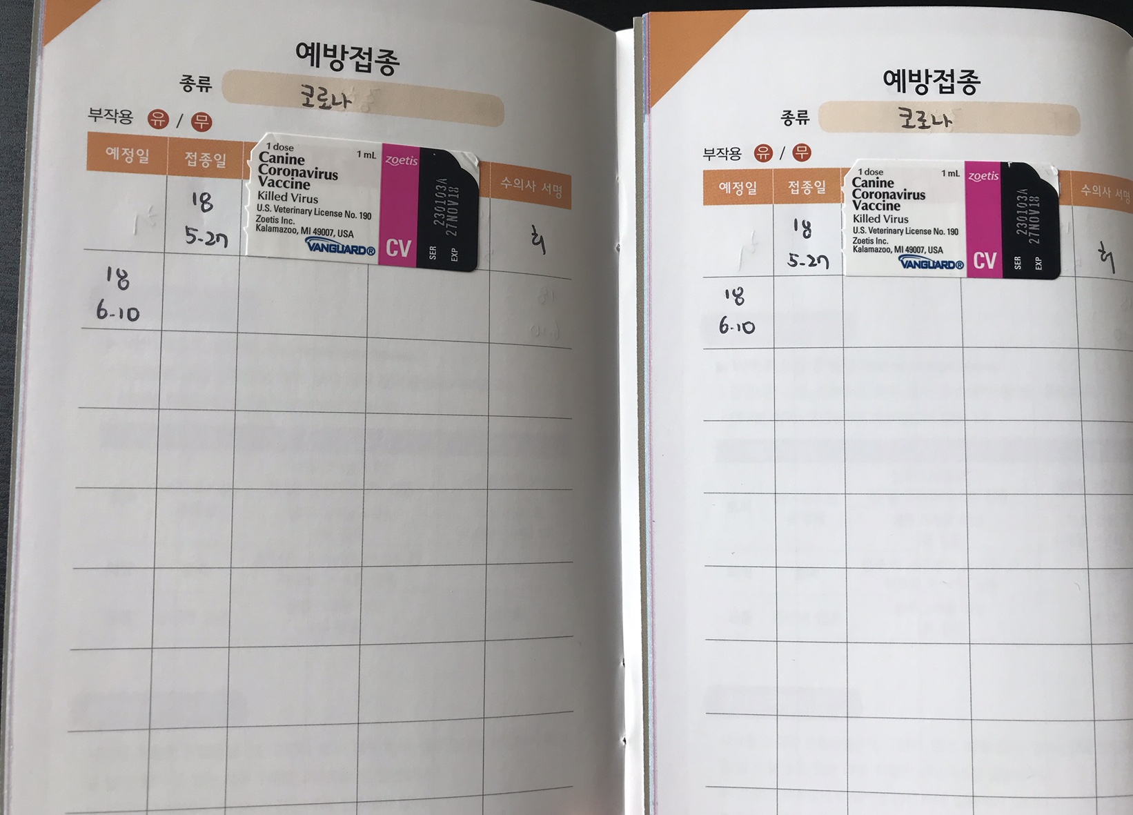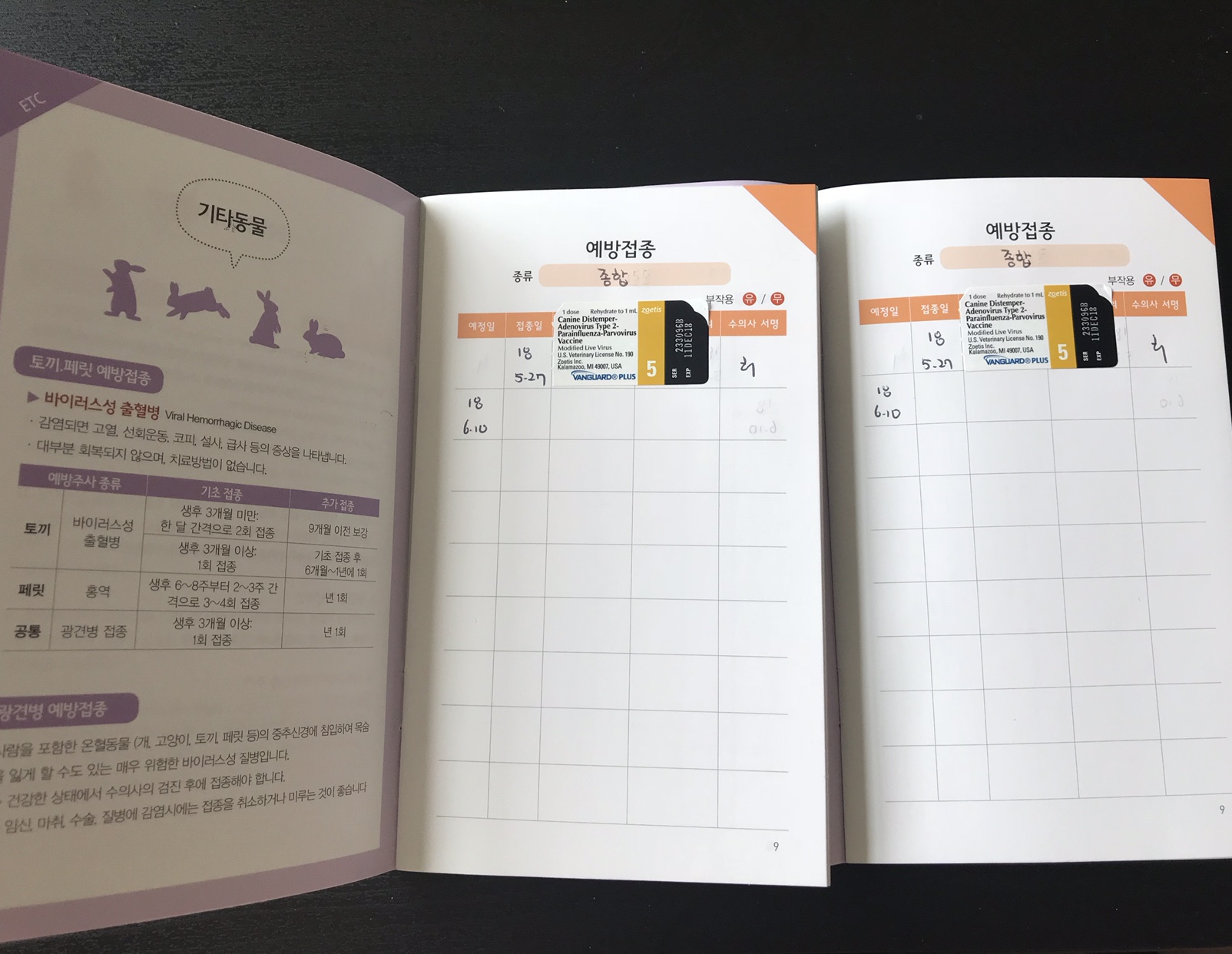 그렇게 시간이 지나고 저희 차례가 와서 진료실로 들어갔답니다 ㅎㅎ 오늘은 예방접종 1차로 종합백신,코로나,구충 이렇게 3가지를 진행하였어요 ㅎㅎ