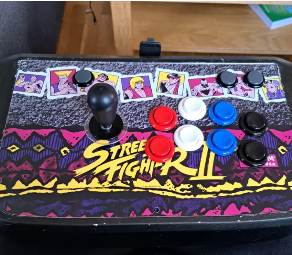 스트리트 파이터는 6버튼 게임이므로 손과 발의 양/중/강의 세개씩 버튼이 있습니다.