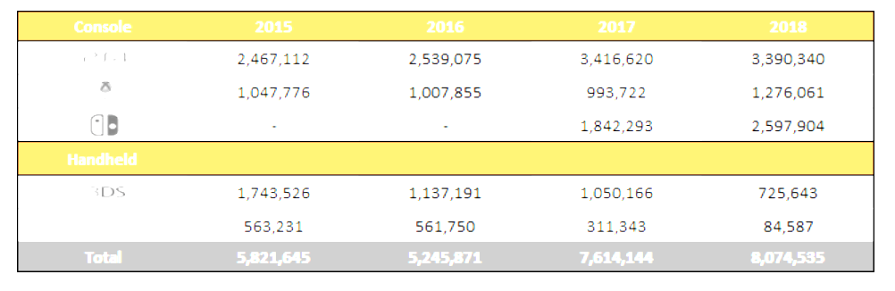 발매가 늦은 닌텐도 스위치에게도 총판매량이 밀리는 상황이 되었음을 알 수 있습니다.