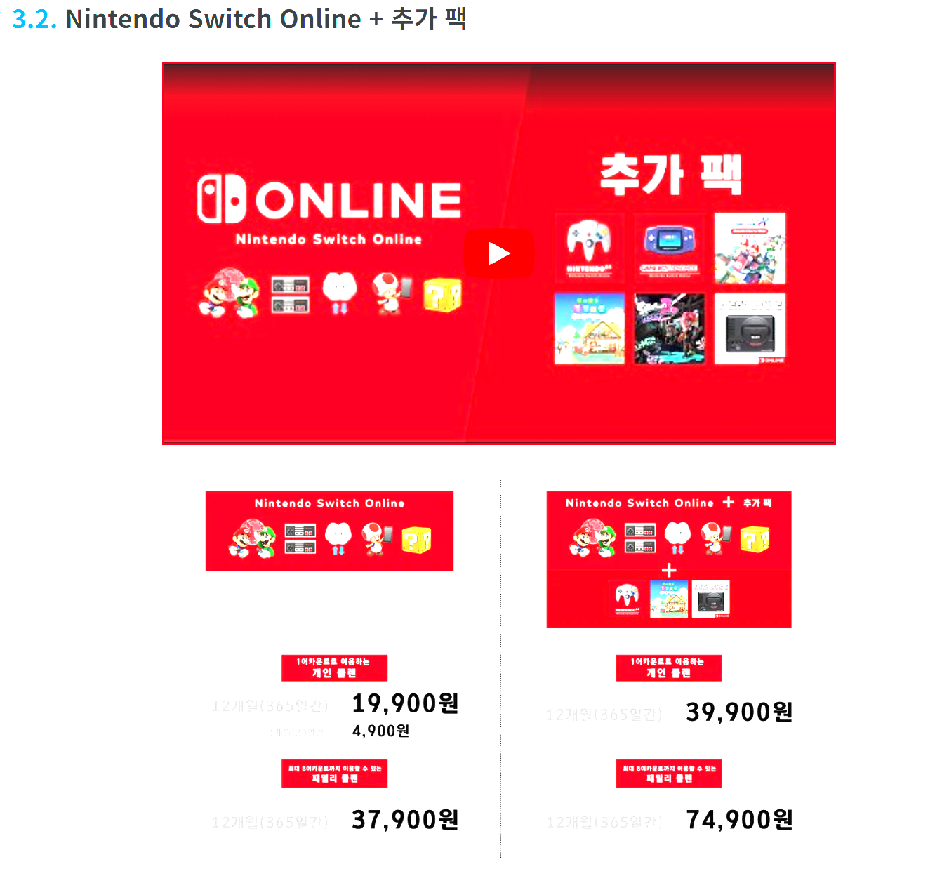 닌텐도 스위치 온라인 패밀리 + 추가팩 1인기준- 12개월 39900원 대략 한달에 3300원꼴