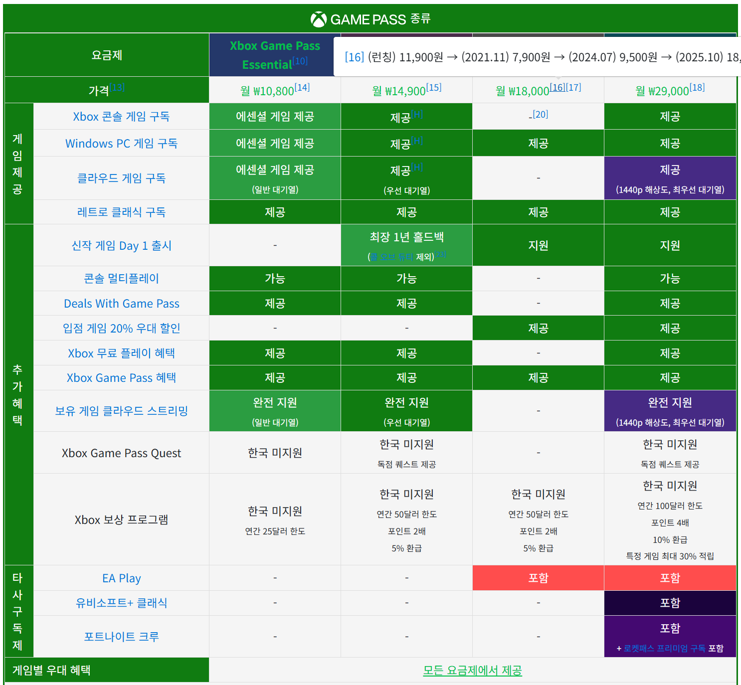 게임패스 서비스 자체를 정리해 놓은 것을 보면