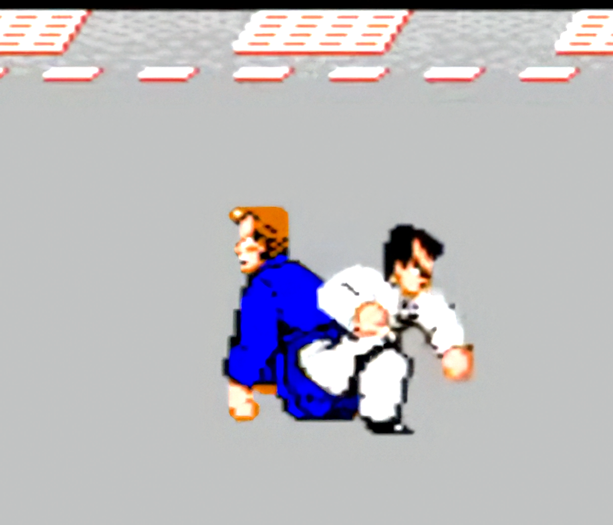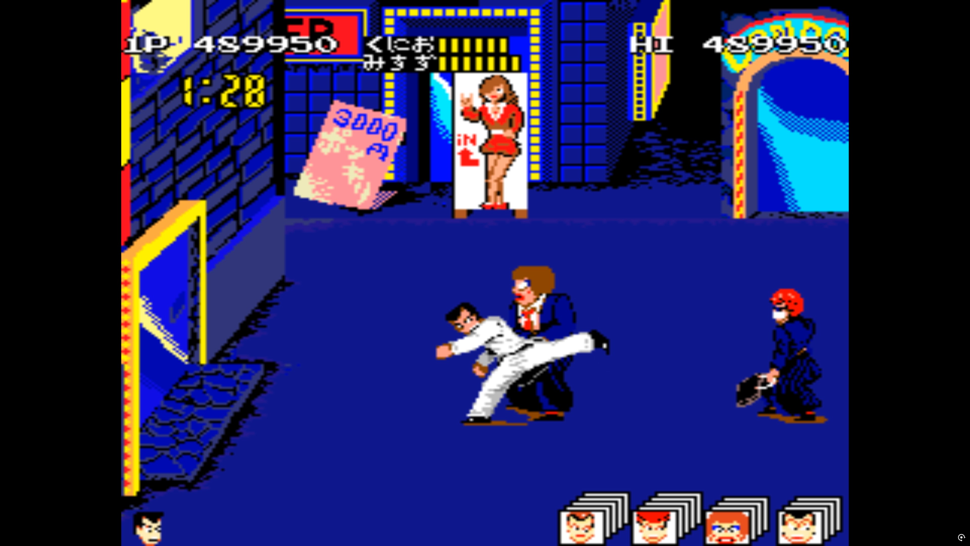 쿠니오가 오른쪽을 바라볼땐 A버튼이 주먹/B버튼이 뒷발차기