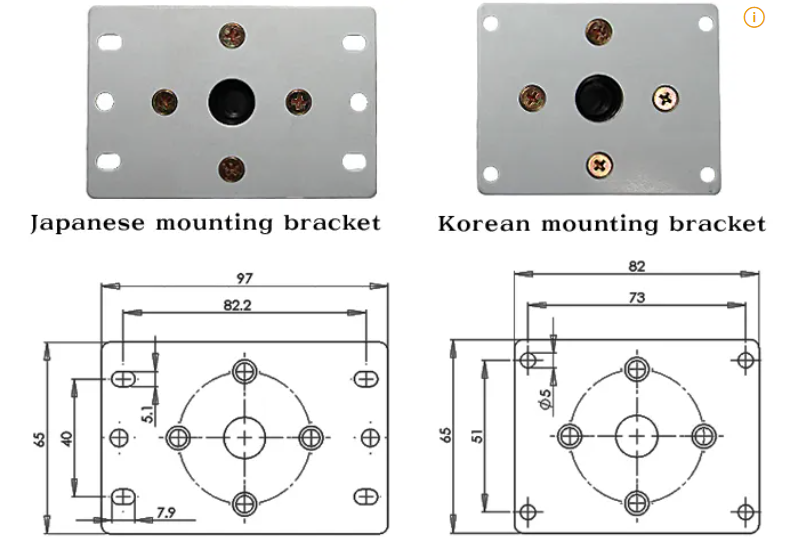 케이스에 레버를 부착하는 구멍이 있는 규격이 한국과 일본이 다릅니다.