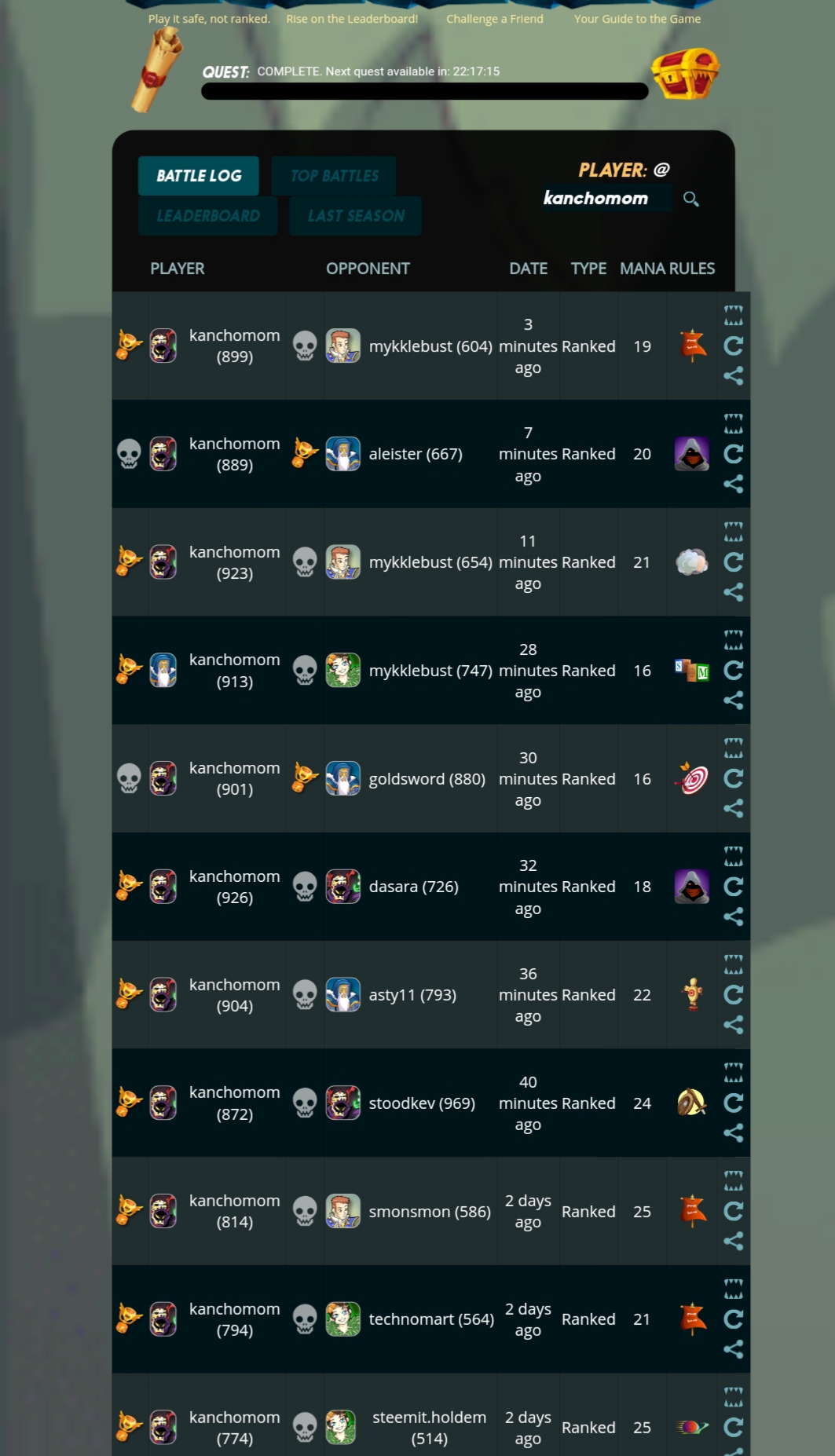 승률은 좋은데?kanchomom (58)in #kr • 7 years ago 오늘도 일퀘를 위해 스몬 접속 수월하게 일퀘 성공 그러나 아직도 실버 일퀘만으론 승급은 어려운가보다 주말엔 실버로 올려야겠다 #steemmonsters