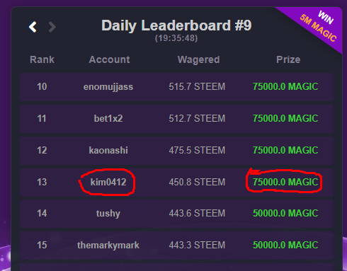 MAGIC-DICEkim0412 (63)in #kr • 7 years ago (edited) 주사위 놀이 15위에 안에 들어가니 75000매직이,,,,, 200스팀을 두번정도 담그면 되는데 한번에 날리수도 있고 수익을 낼수도 있는데 조절바를 이용해서 조절하기 나름이지요. 참고로 날릴까봐 오버6으로 베팅을 했어여. 안정적으로요. 수익도 9스팀을 벌었네여 https://magic-dice.com/?ref=kim0412 #magicdice
