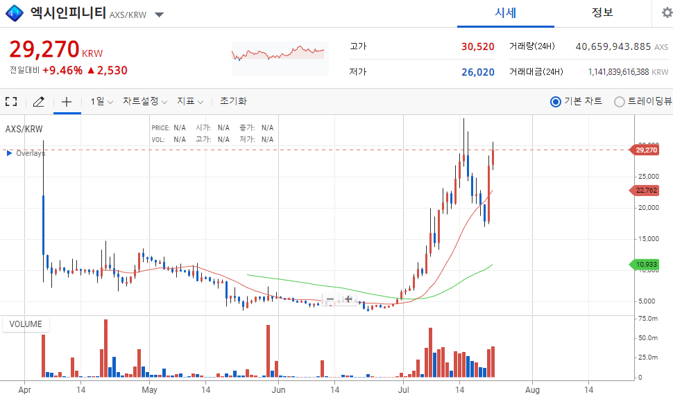 .kingwhale (59)in #kr • 5 years ago 다시 엑시가 3만원을 향해가고 있습니다. 엑시 코인은 없지만 엑시를 하고있는 입장에선 흐뭇하네요 브리딩에는 어려움이 있지만 지금 당장 브리딩할 생각은 없고 SLP 모아서 원금 회수가 우선이니 앞으로도 쭉쭉올라라~ #krsuccess #zzan #aaa #life