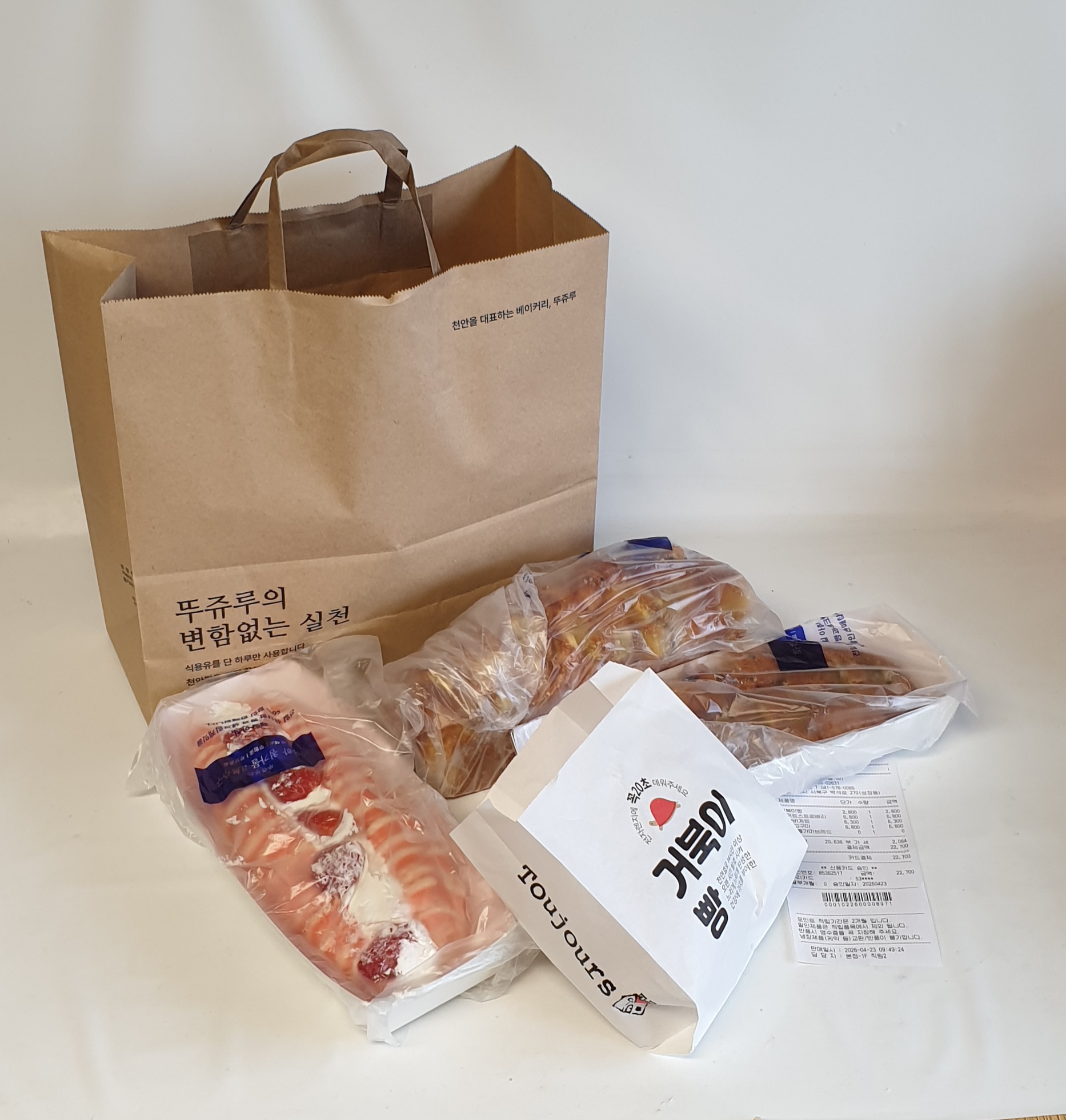 뚜쥬르 리뉴얼kiwifi (83)in #kr • 4 days ago 아침에 인스타보다가 리뉴얼 행사한다는 소식을 듣고 바로 달려갔습니다. 돌가마브레드가 공짜라니... 뭐가 달라졌는지는 모르겠음 30분 정도 줄서서 구입했습니다.이게 2만2천원 어치라니... 사은품도 야무지게 챙겨왔음 #krsuccess