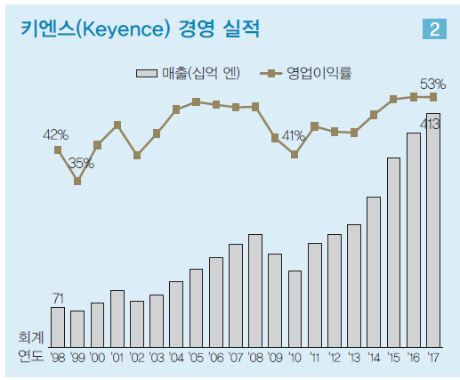 그로인한 고객도 알지못하는걸 먼저 간파하여 고객의 요구사항에 부합하는 기능을 모두 갖춘 제품이 키엔스의 제품 밖에 없기 때문에 경쟁사의 유사 제품 대비 30~40% 높은 가격을 받으며 판매할 수 있었다.