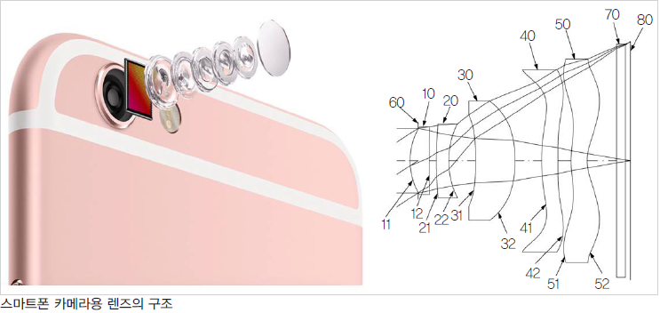 스마트폰에 있는 렌즈는 무척이나 작다. 스마트폰은 보통 5-6개의 렌즈가 소요되며 아이폰7 12메