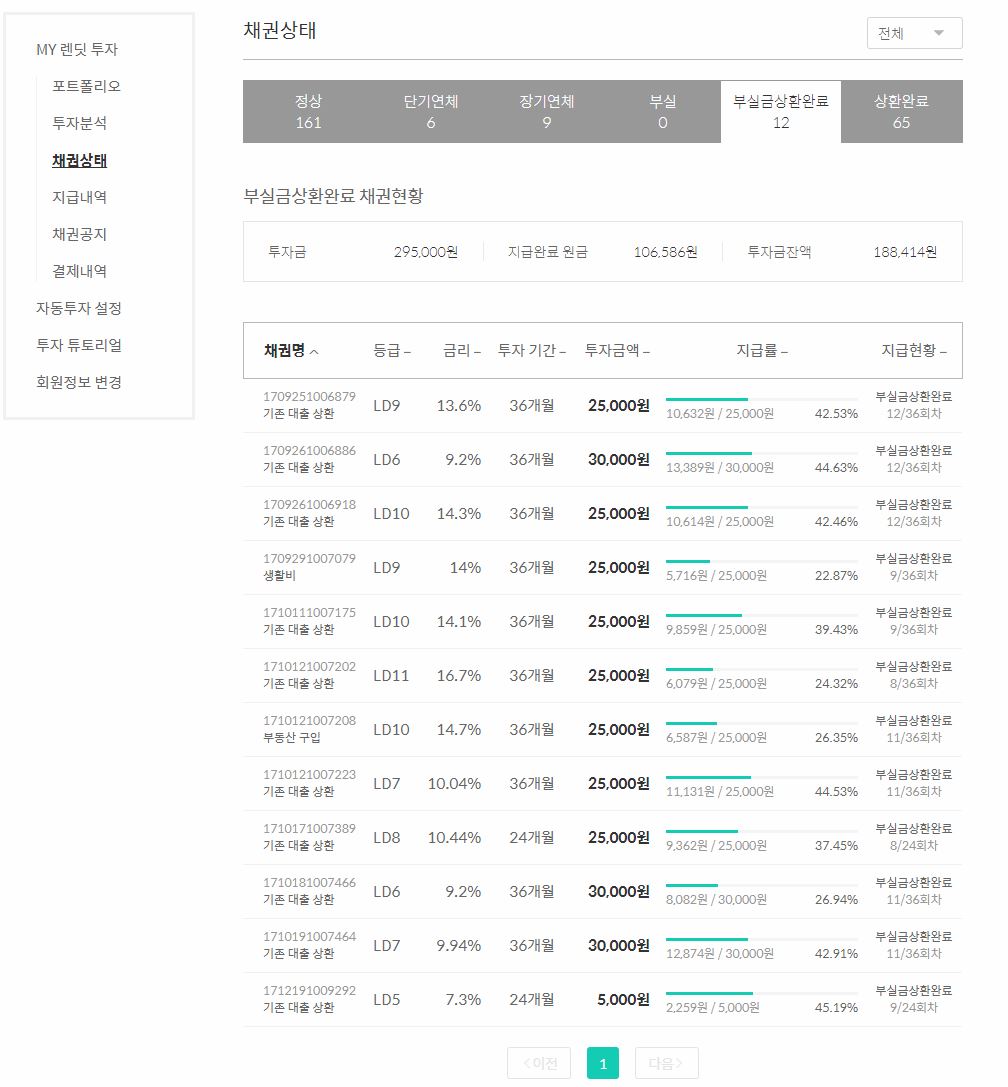 투자자 보호 장치라고는 하나도 없고 회생하기 전에 목돈 빌리는 용으로 악용되기 딱 좋은 시스템이더라고요. 전 앞으로 개인대출 P2P는 절대 안하려고요.
