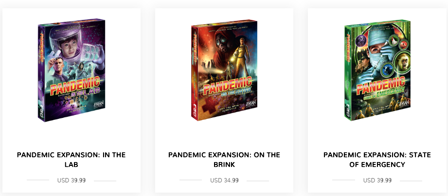 플레이어 카드에는 도시 카드/이벤트 카드/전염 카드가 있다. 같은 색상의 도시카드 5장을 모아서 연구소가 있는 도시에서 치료제를 개발할 수도 있고, 이벤트 카드가 있다면 누구 차례에 상관없이 해당 이벤트를 발생시킬 수 있다. 전염 카드가 뜬다면 비상! 감염률을 높이고 감염카드 맨 밑의 카드를 뽑아서 질병큐브 3개짜리 감염을 시킨다. 이때 이미 질병큐드가 3개 몰려있다면 질병은 주변 도시로 확산하며 확산레벨도 올라감!