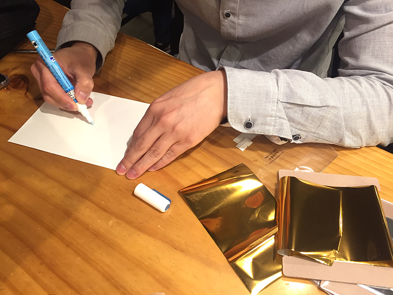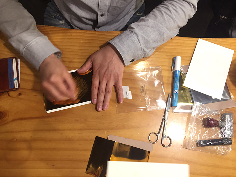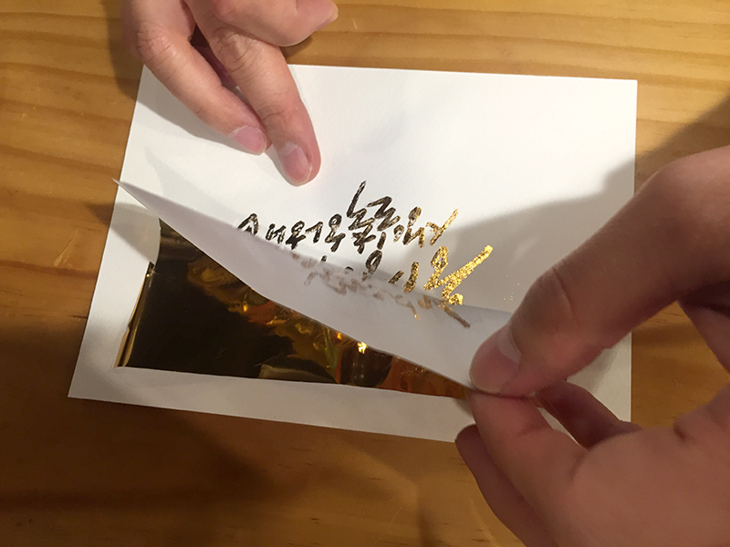 금박지를 붙이고 문질러 줍니다.