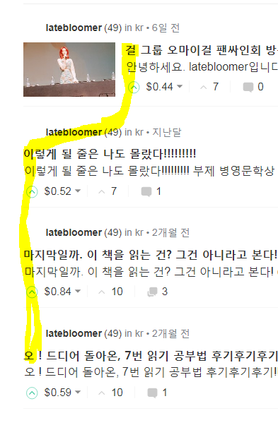 노란 색을 따라가다 보면 오마이걸이 나오는 군요
