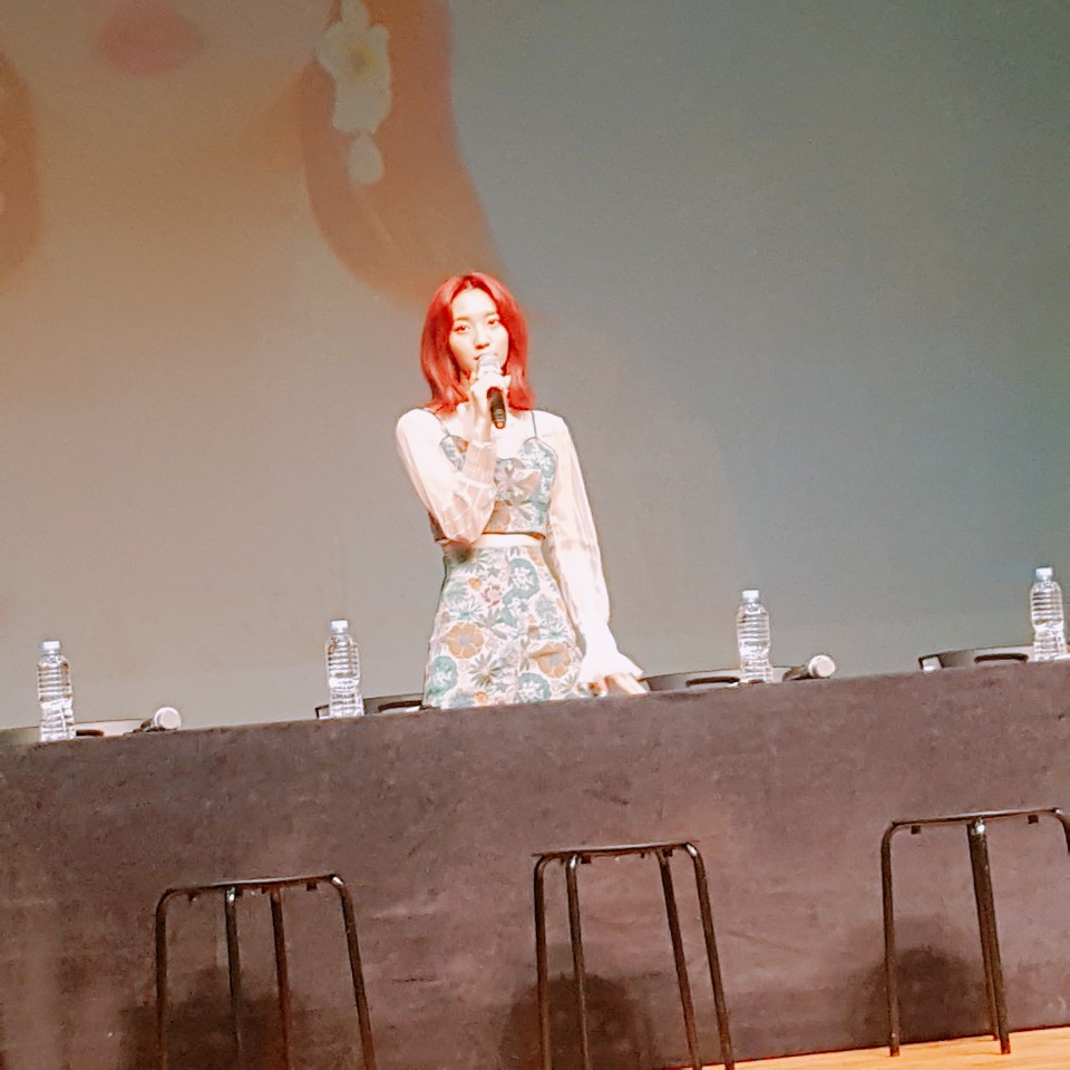 보니까 다른 분들은 멤버들 주려고 꽃도 사오고 단 것들도 사오고 그랬는데 저는 빈손이었네요. 그게 부끄럽진 않았지만, 아쉽기는 했어요. 뭐라도 주고 싶은 마음이어야 했는데 좋아하는 마음이 다른 사람들보다 조금은 부족했어요. 그렇게 싸인을 받는데 어찌나 땀이 나던지. 머리는 까까머리에 군인같이 생긴 친구가 삐질 삐질 땀을 흘리는 게 참 허허허헣 괜찮아요 괜찮아요. 끝으로 미미에게 싸인을 받고 저의 차례가 끝이 났었어요. 내려오고 나니 운동장 100바퀴 돈 것처럼 심장이 뛰고 있더라고요.