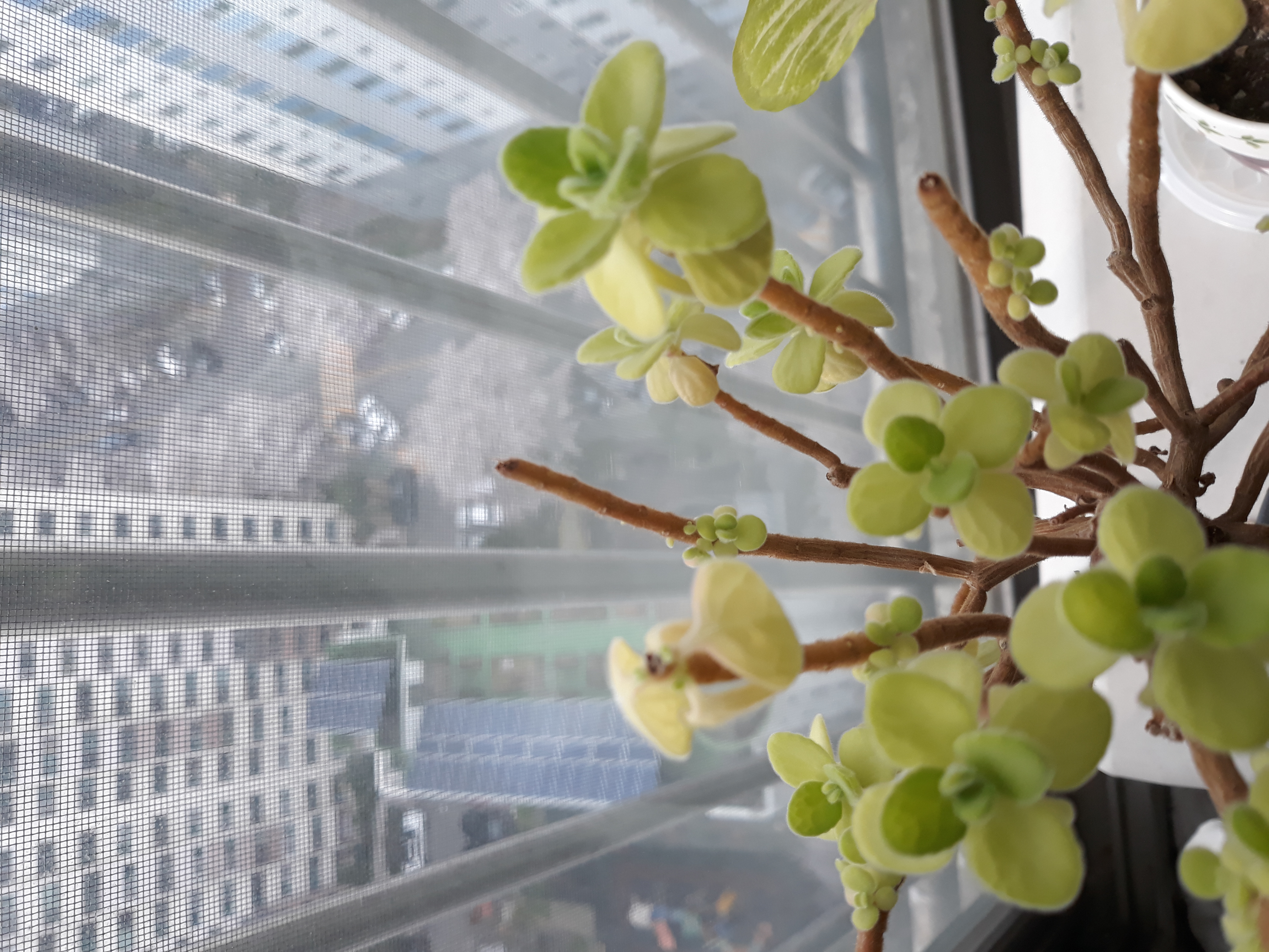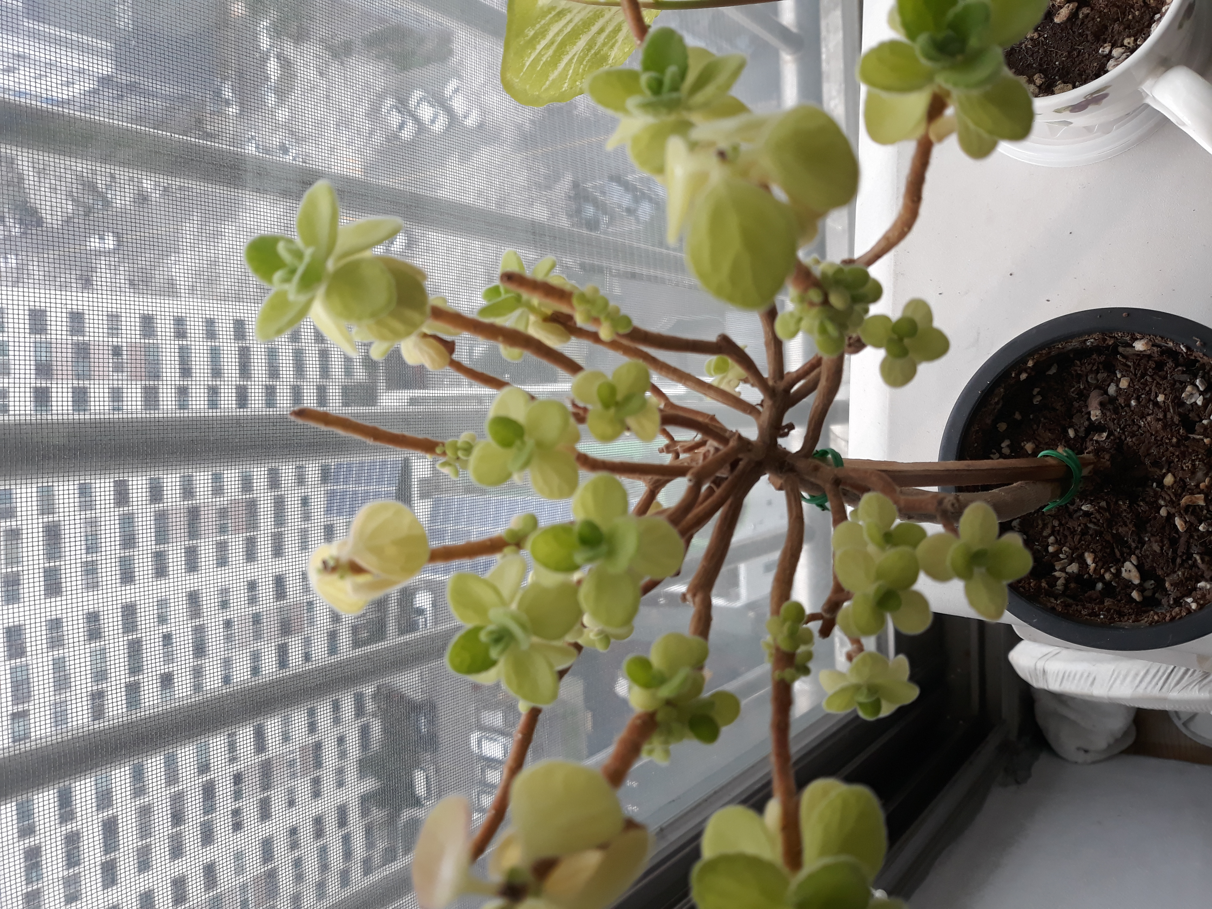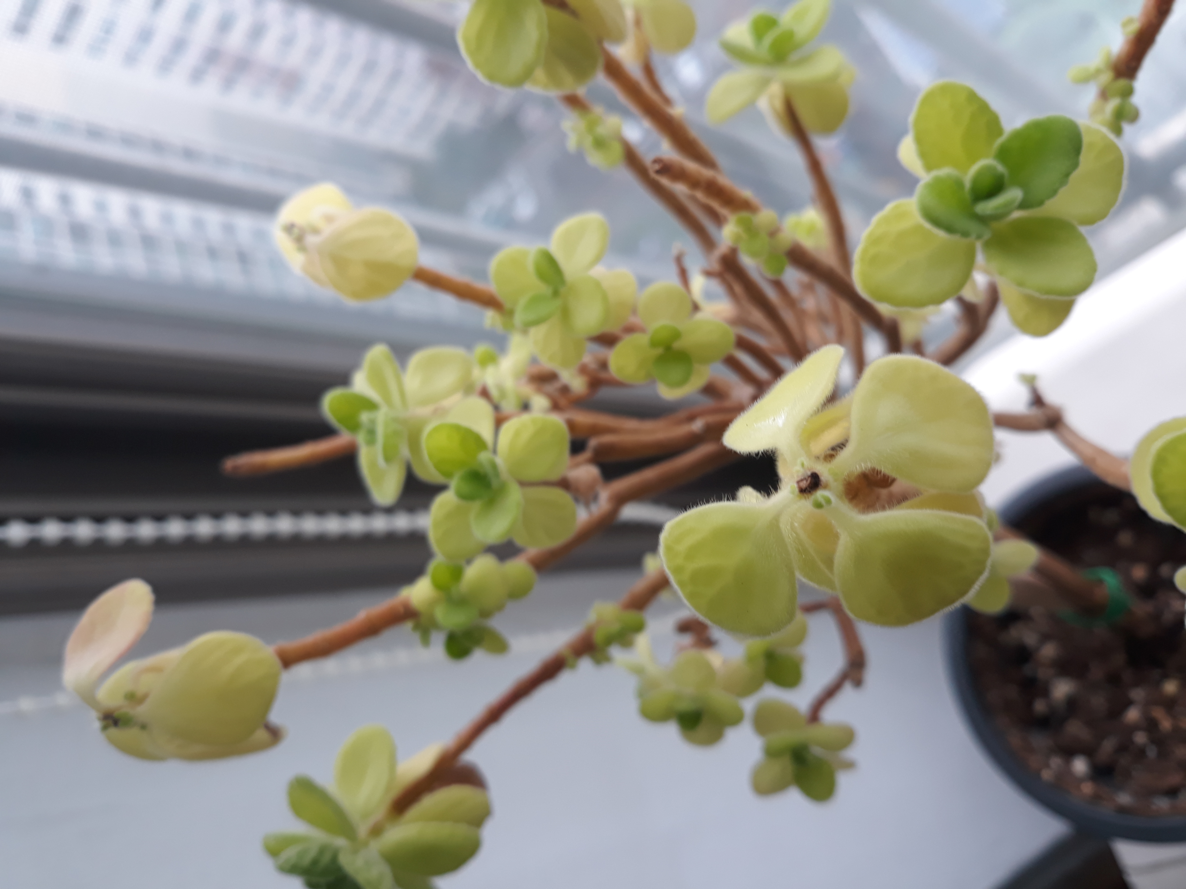 지인에게 분양받은 장미허브~한 3주전에 위에 잎대를 또각또각 다 땠었는데...그 위로 새잎들이 나있네요.