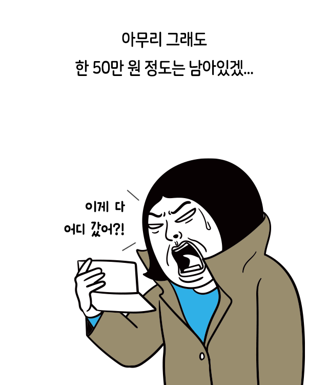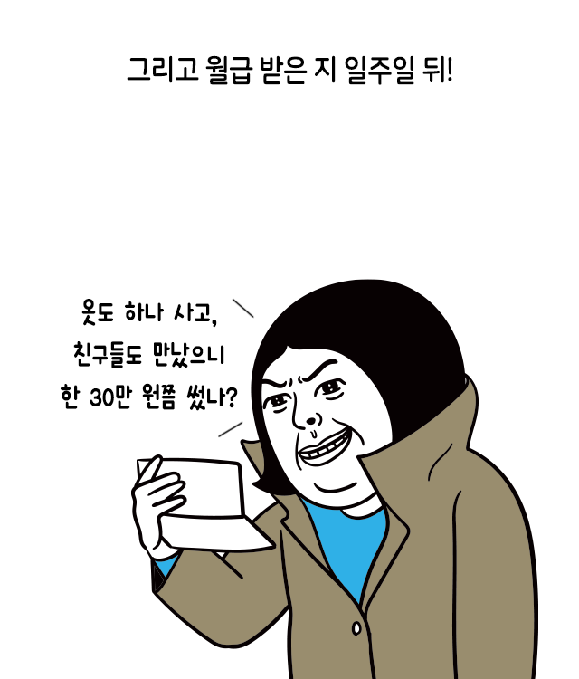[만화의 효능 - 101] 일주일 만에 월급 99% 탕진하는 사람들 특징leftjap (55)in #kr • 7 years ago 돈이요? 이번 김장 때 김치랑 같이 땅에 묻었죠~ #kr-art #kr-funfun #kr-life #shareshows