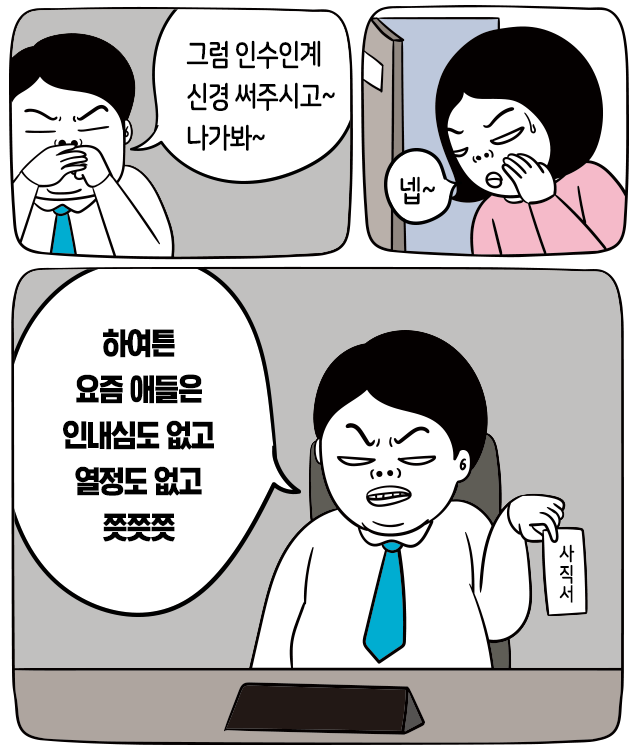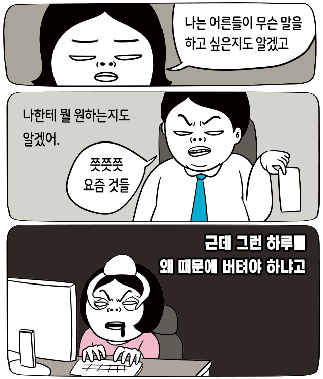 [만화의 효능 - 102] 90년생인 내가 회사를 때려치는 진짜 이유leftjap (55)in #kr • 7 years ago 공무원을 갈망하고, 호구가 되기를 거부하는 그들이 온다 #kr-art #kr-funfun #kr-life #shareshows