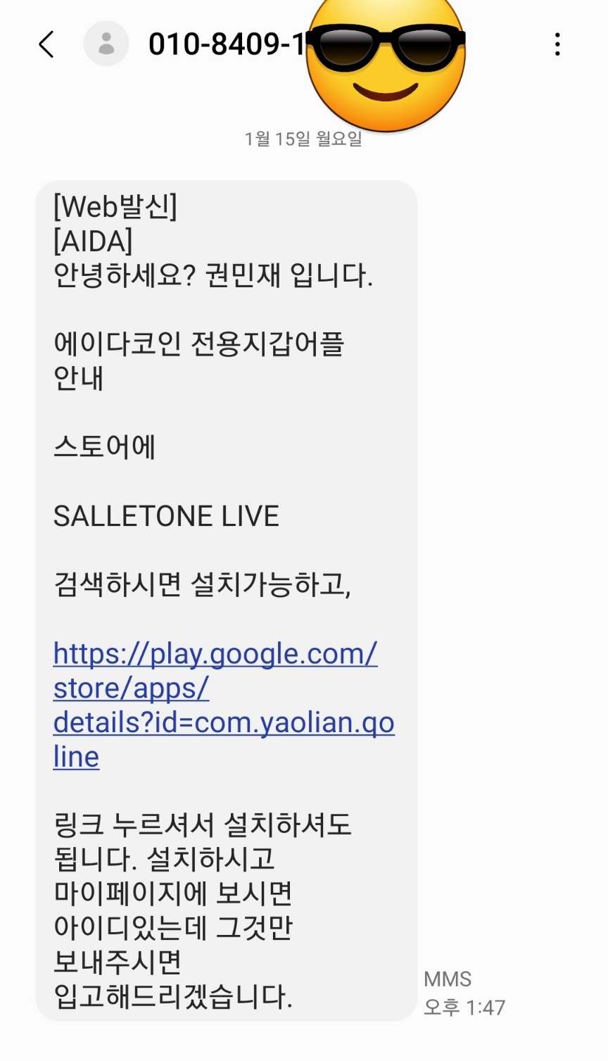 만약 아니라면 salletone 팀분들 보고 연락주겠지~ 일단 앱은 신고하겠습니다