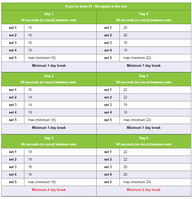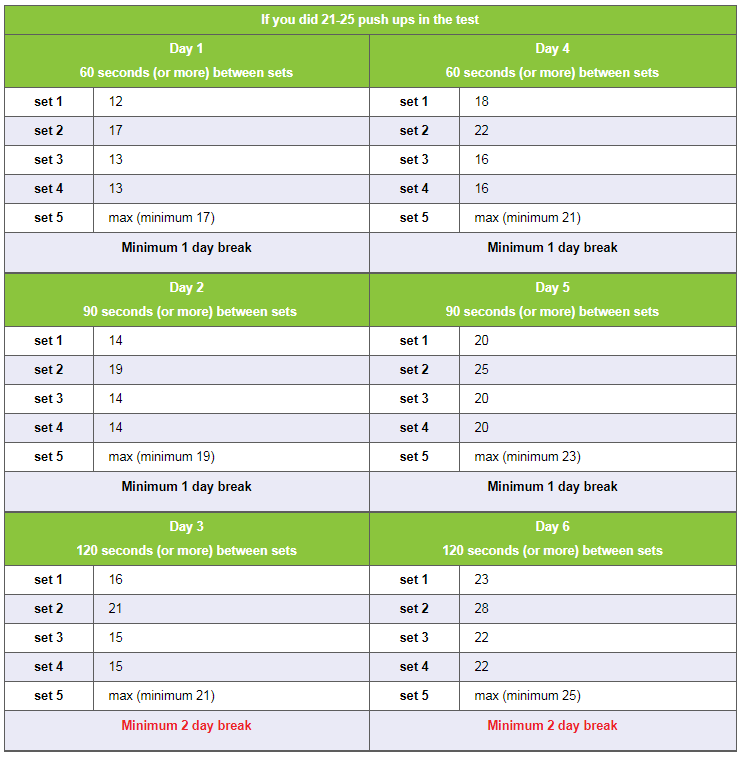 위 3개의 사이트에 가보면 자신의 최대 개수에 맞는 운동 루틴이 나와있다.