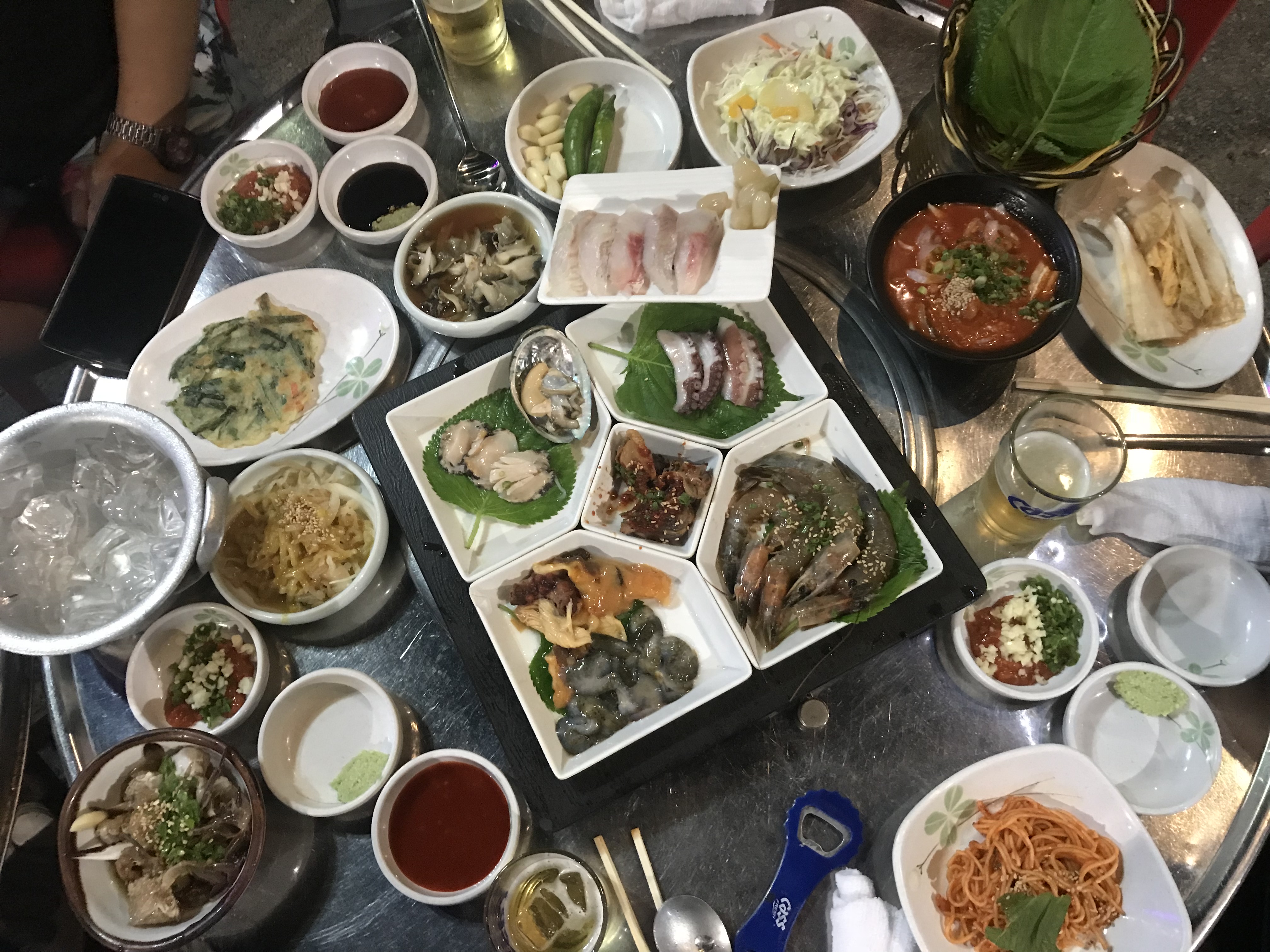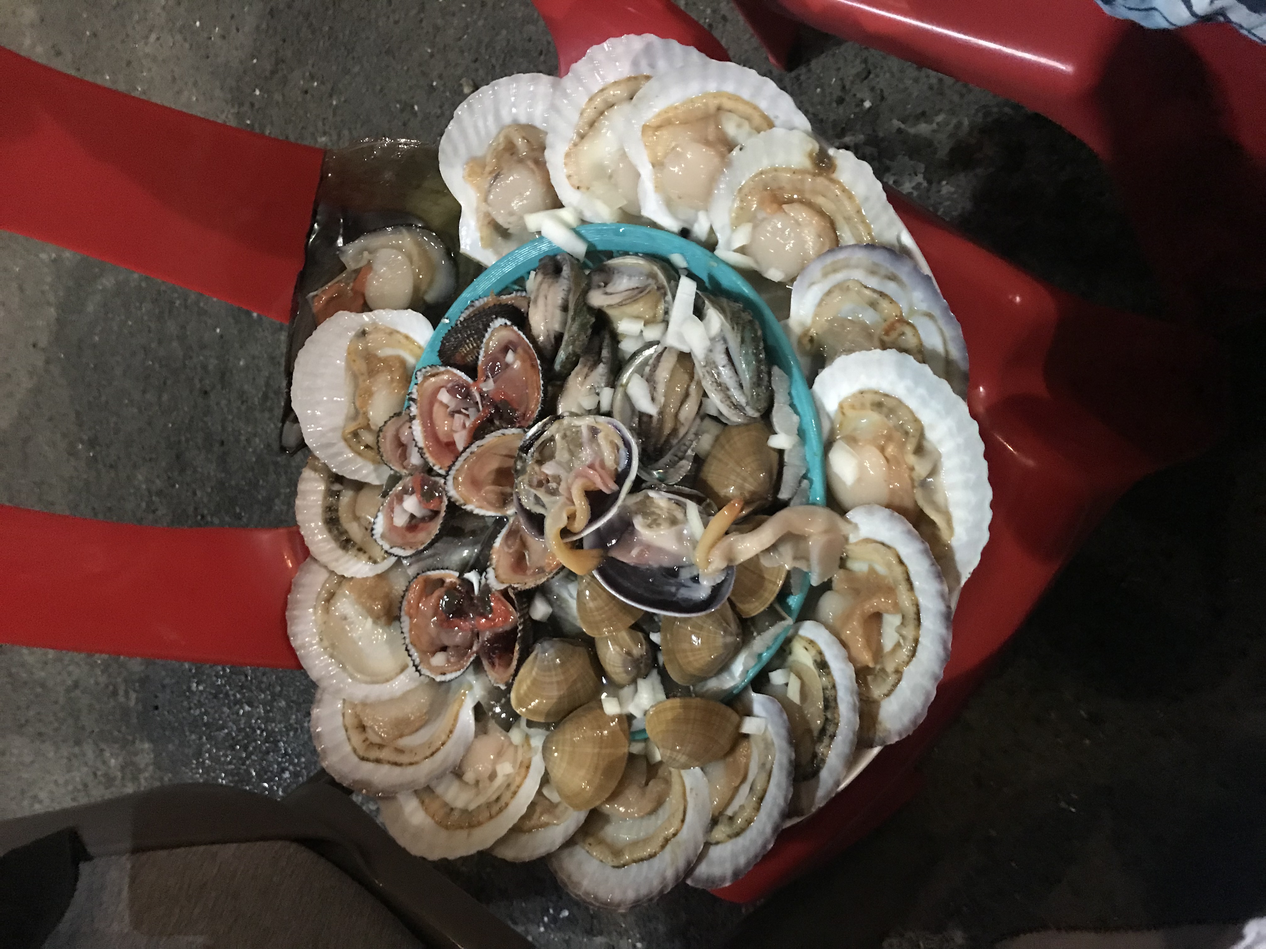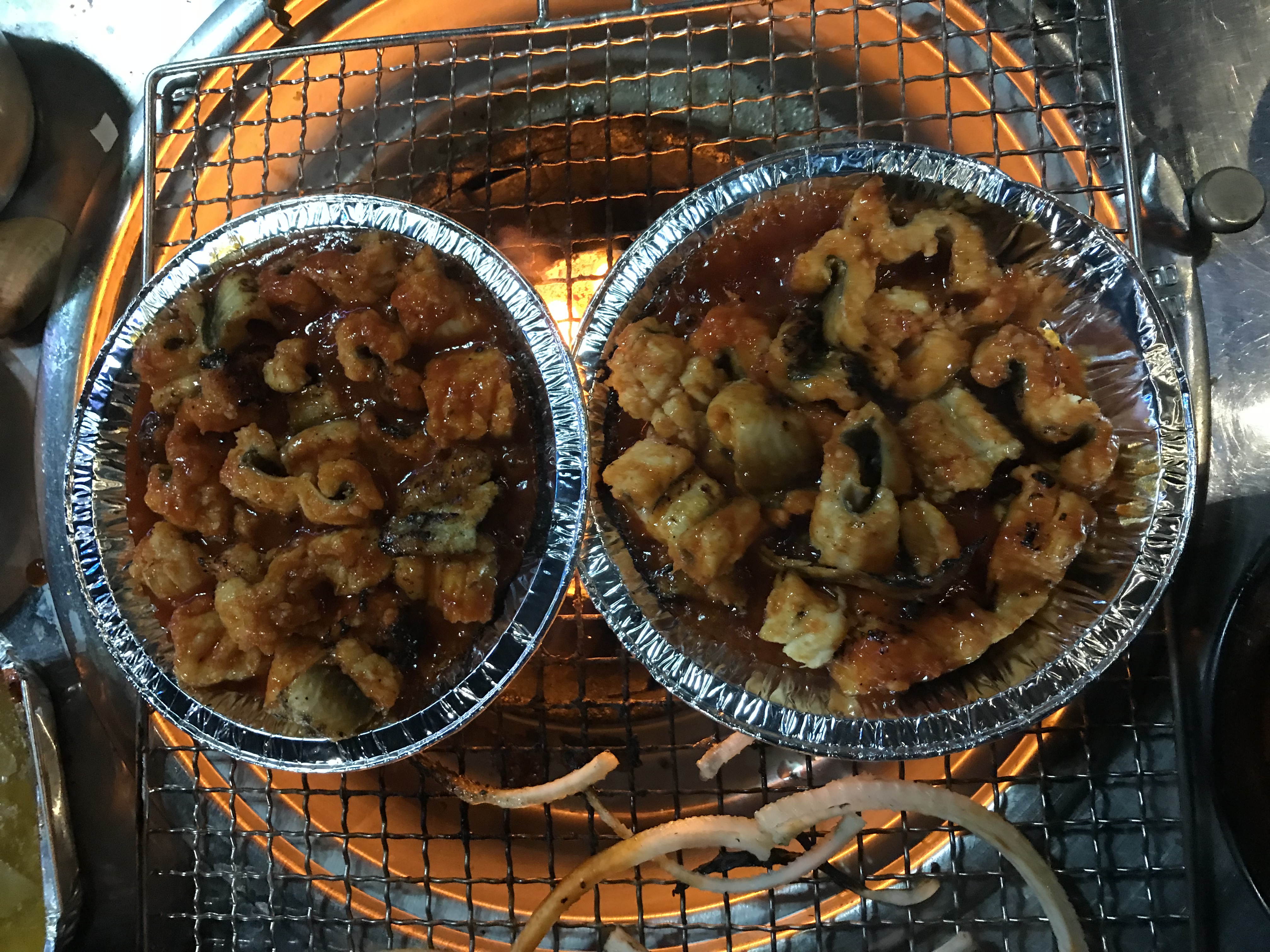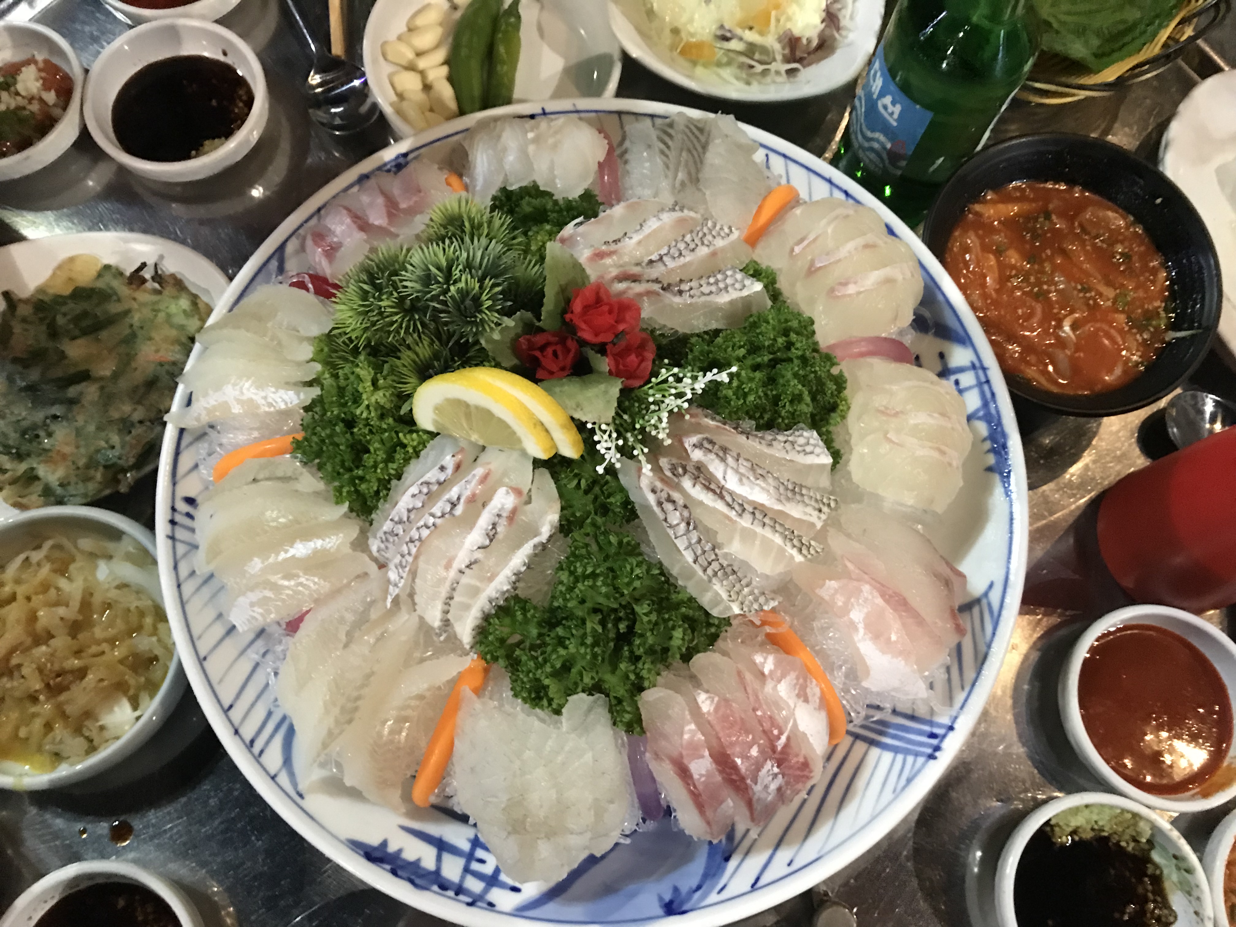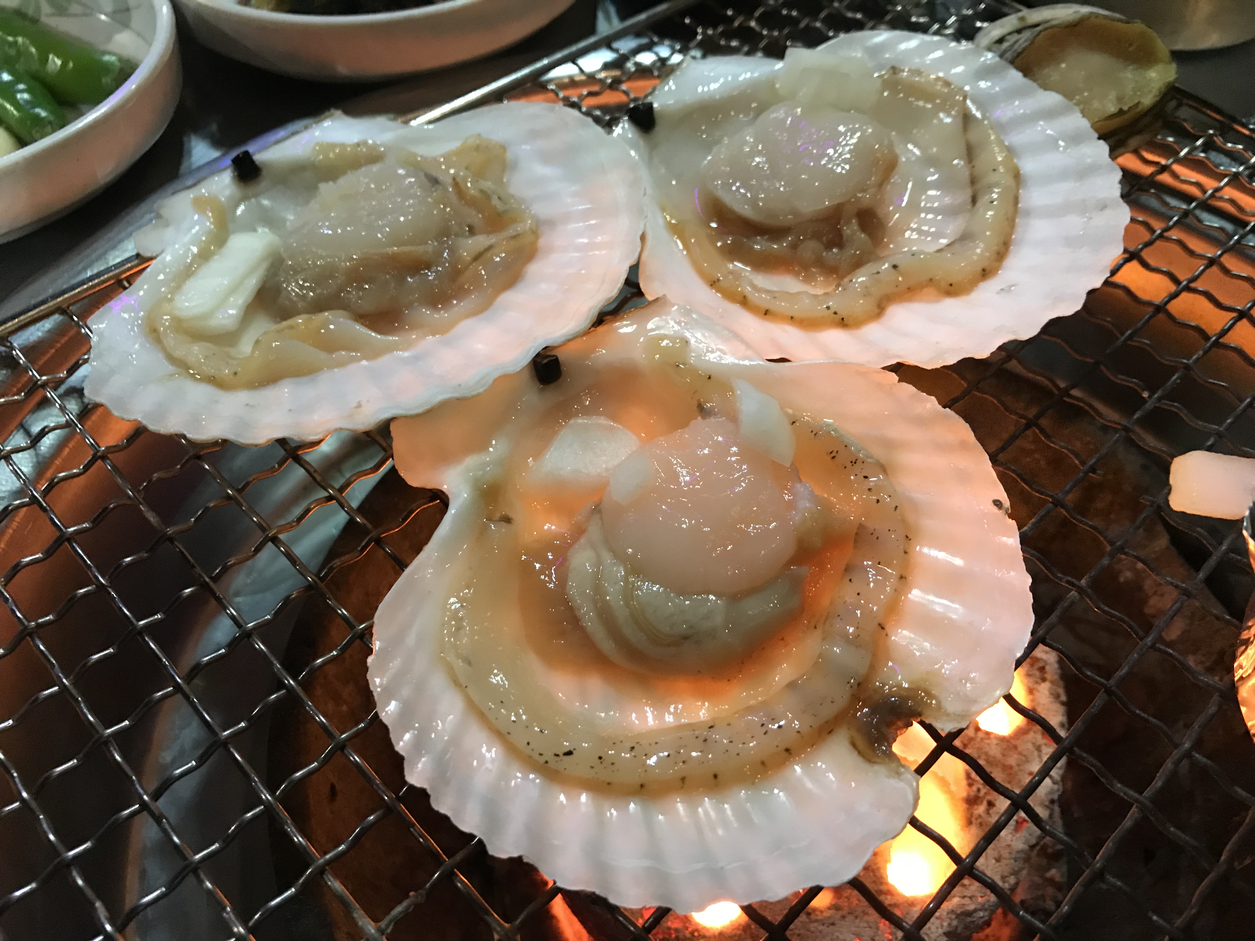 조개 구이와 회~ 마지막은 꼼장어 맞나요 ?