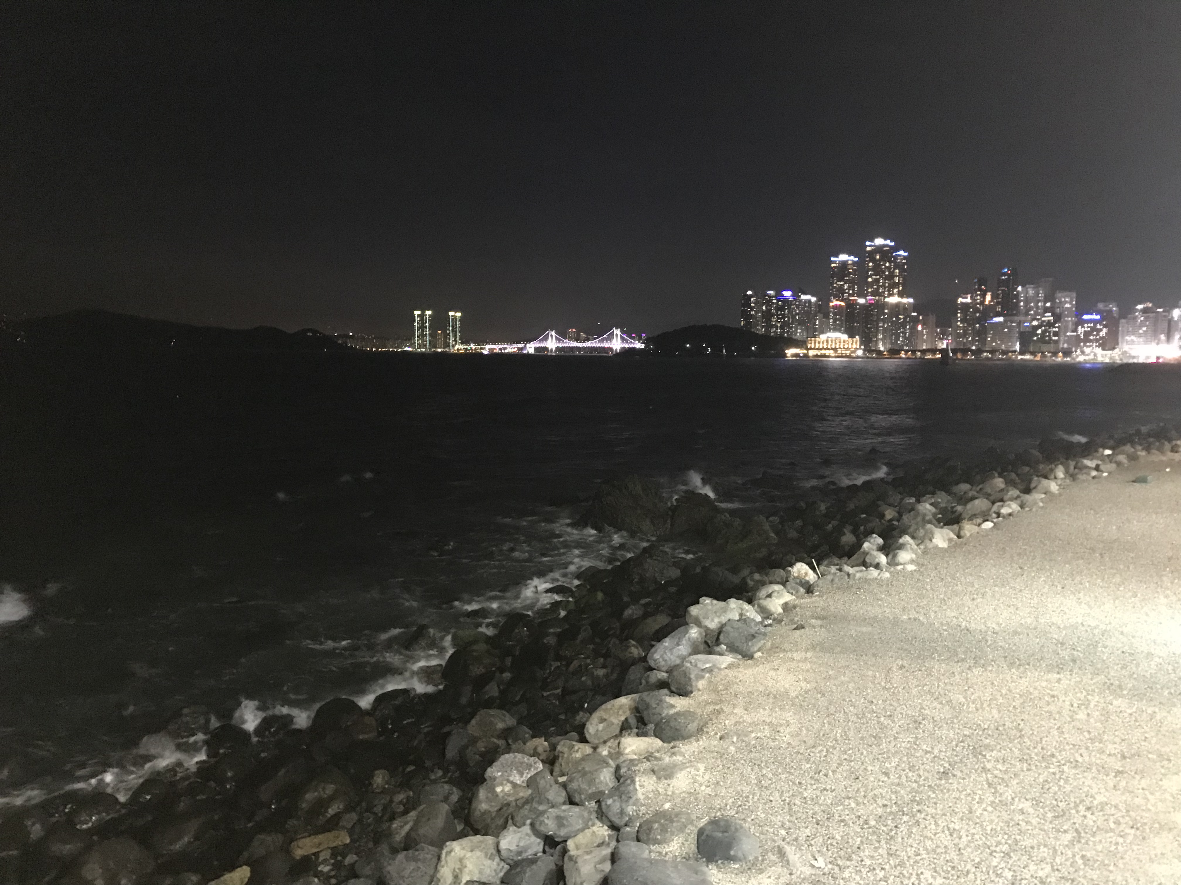 야외에서 바다와 광안대교를 보며 파도 소리를 듣고..