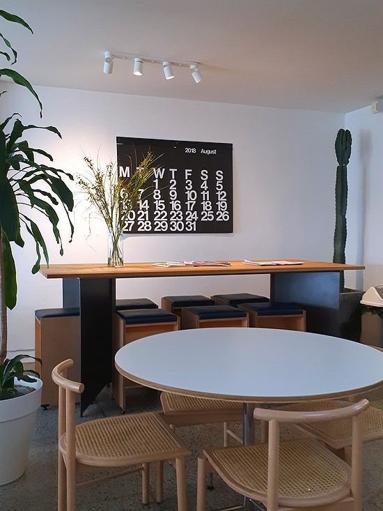 단체석 뒤로 보이는 캘린더도