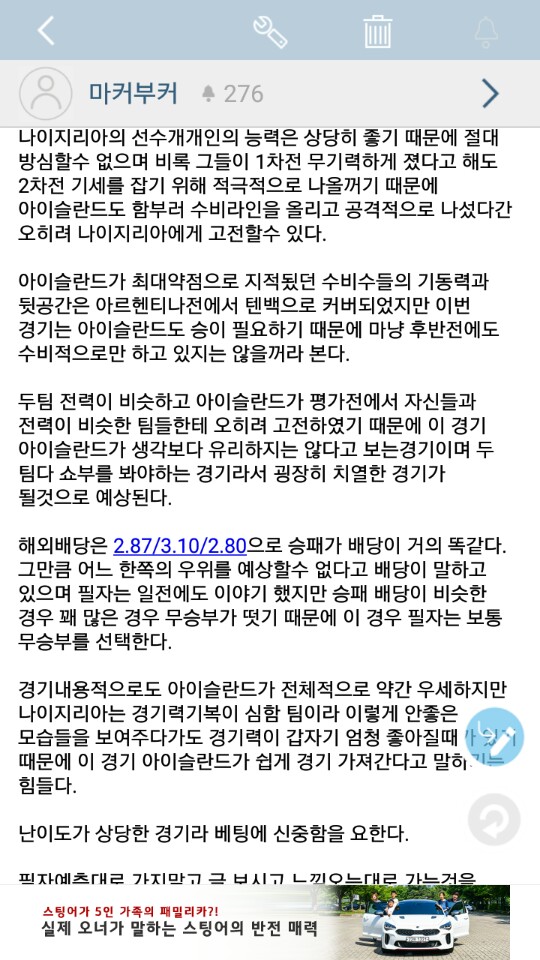 나이지리아 아이슬란드 월드컵 경기분석요약makuskimmmie (31)in #kr • 8 years ago 축구를 오래 보기도 했고 이렇게 분석해서 경기가 어떻게 흘러갈지 결과는 어떻게 될지 예측하는 것이 제 취미라서 올리게 되었고 다른 곳에서 제가 직접 글을 써서 여기다 글을 옮기는 방식으로 해서 글을 쓸려고 합니다. 월드컵뿐만이 아니라 유럽 축구리그와 세계주요리그 등은 계속 프리뷰 할 예정입니다. 마커부커라는 닉네임이 저이며 절대 다른 사람의 분석을 가져오는 것이 아니라서 오해안하셨음 좋겠습니다.